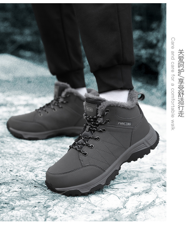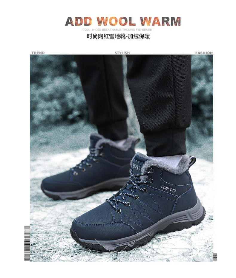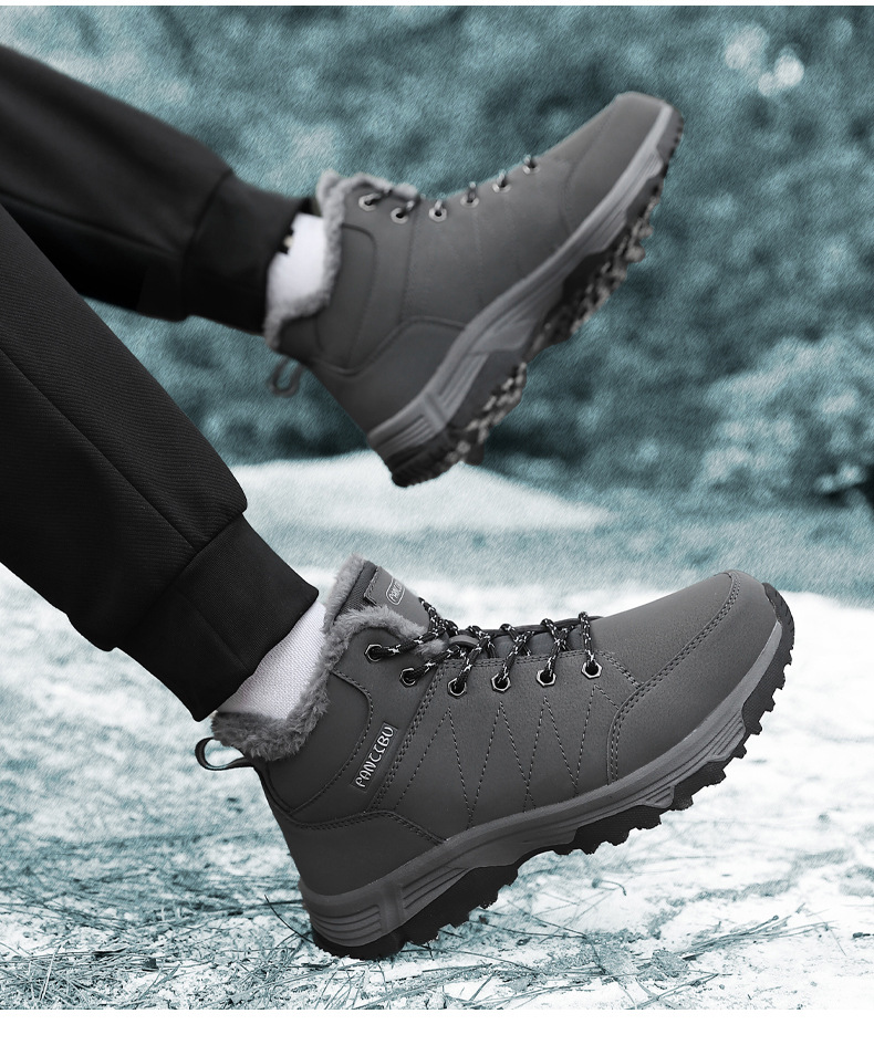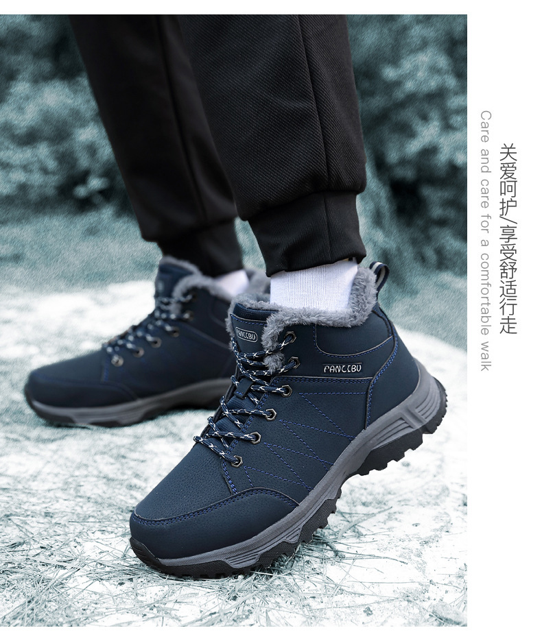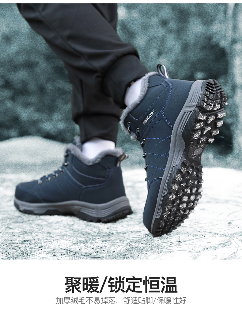 남성용 겨울 스포츠 야외 스노우 부츠 기모 따뜻한 코튼 신발 방풍 레이스 업 착용 방지 야외 등산 신발스토어 가기