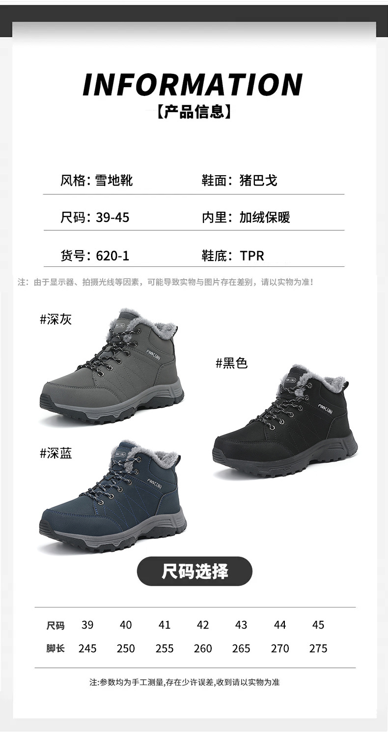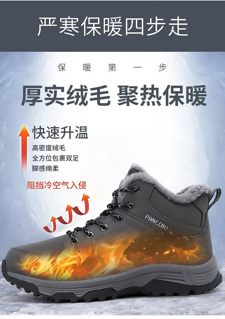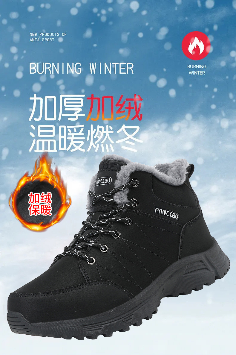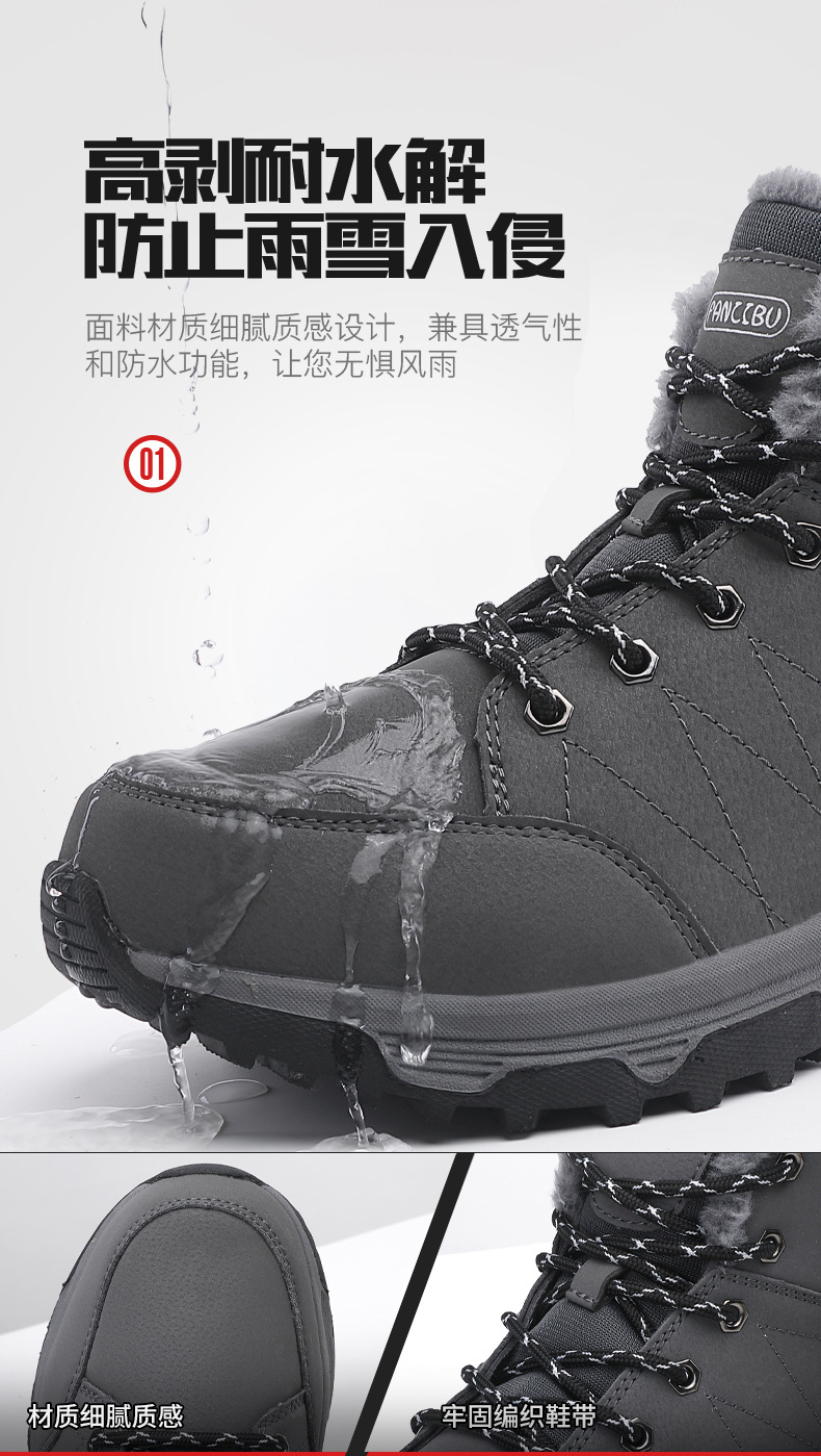 남성용 겨울 스포츠 야외 스노우 부츠 기모 따뜻한 코튼 신발 방풍 레이스 업 착용 방지 야외 등산 신발스토어 가기