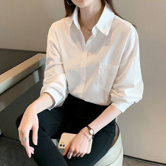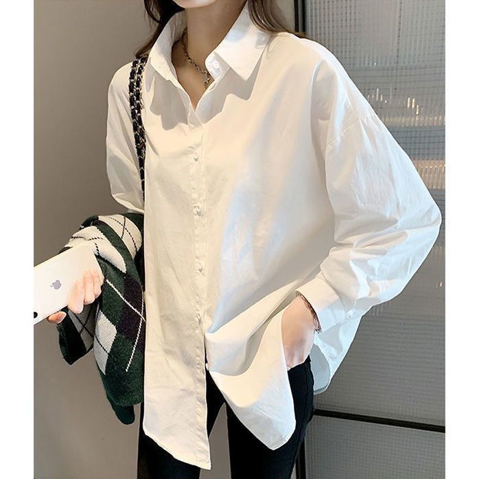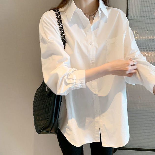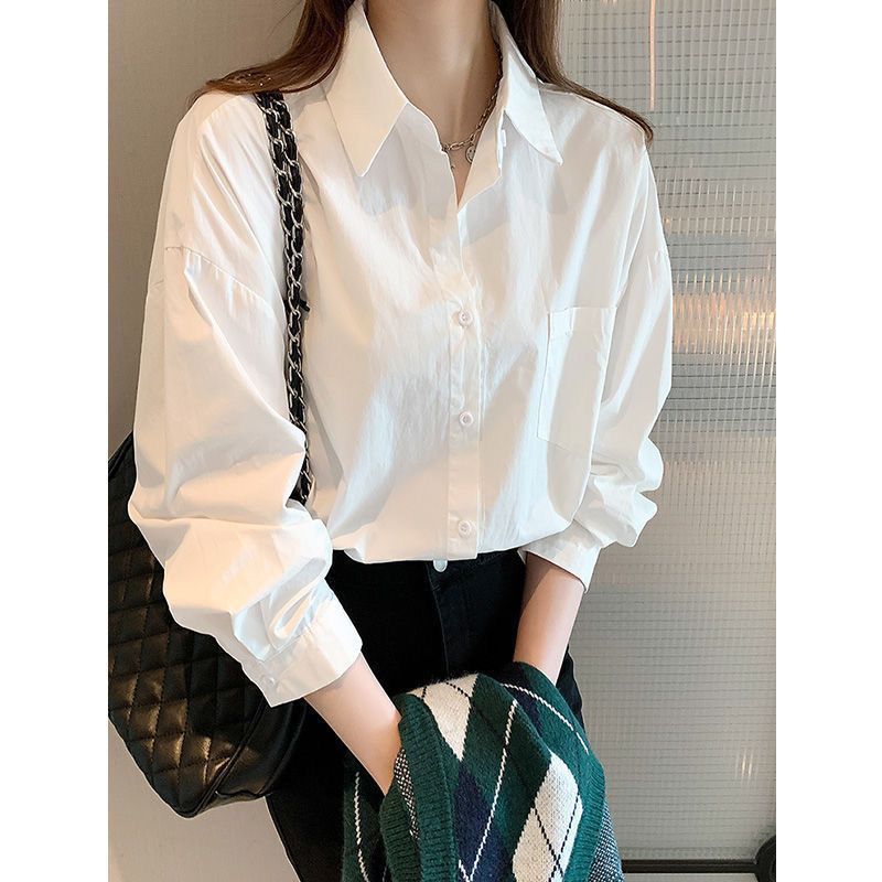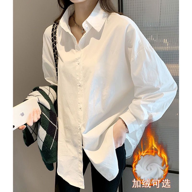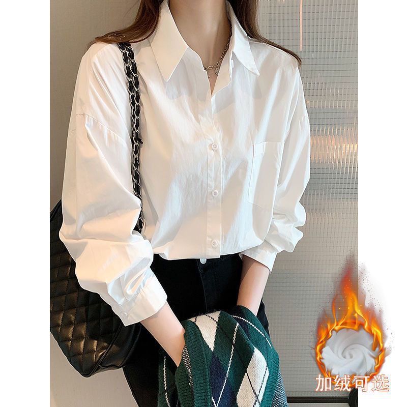 화이트 셔츠 여성용 내복 가을/겨울 2024 기모 작은 남성 스택 외국 스타일 탑 올 매치 긴 소매베이스 셔츠