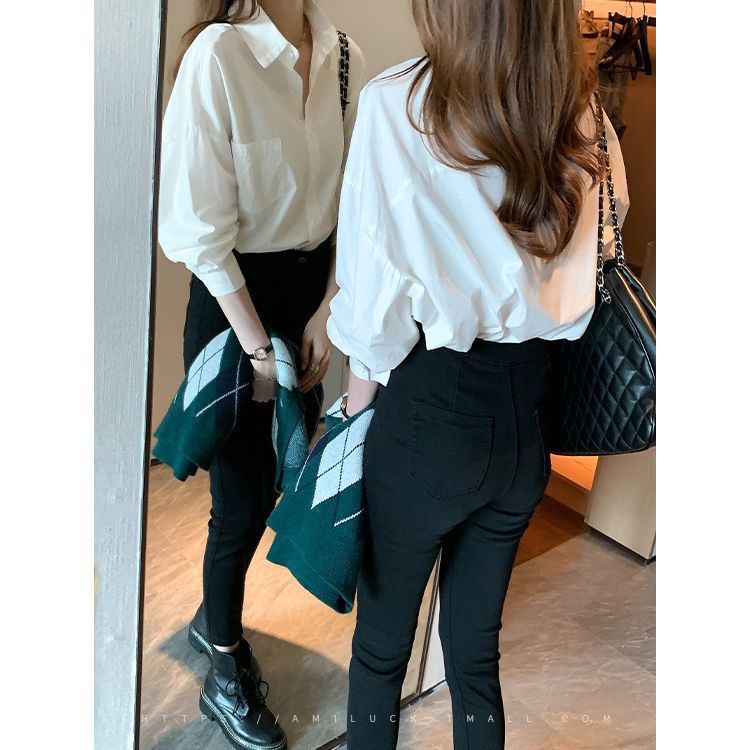 화이트 셔츠 여성용 내복 가을/겨울 2024 기모 작은 남성 스택 외국 스타일 탑 올 매치 긴 소매베이스 셔츠스토어 가기