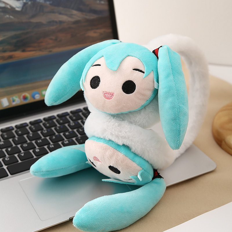 겨울 새로운 만화 입체 하츠네 미쿠 따뜻한 귀마개 라이딩 방한 및 동결 방지 플러스 벨벳 두꺼운 플러시 귀 따뜻하게