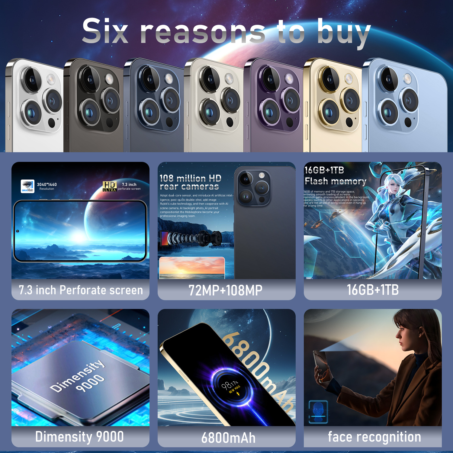 국경을 넘는 휴대폰 신제품 I16 Pro Max 16+1TB 스마트 아일 안드로이드 8.1 대외 무역 인기 스마트폰스토어 가기