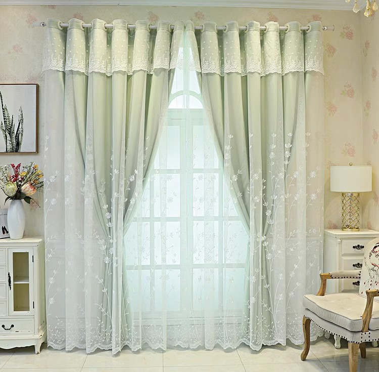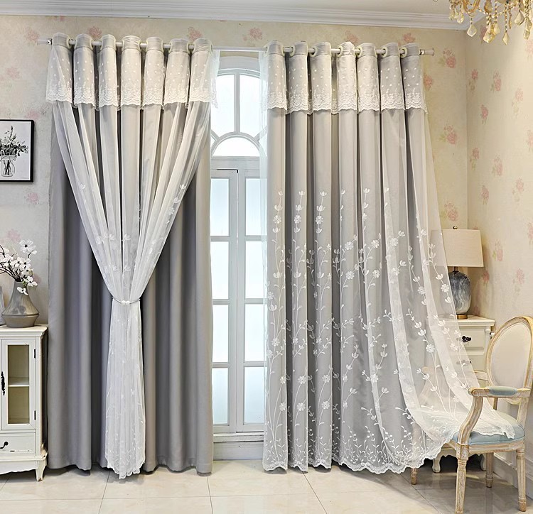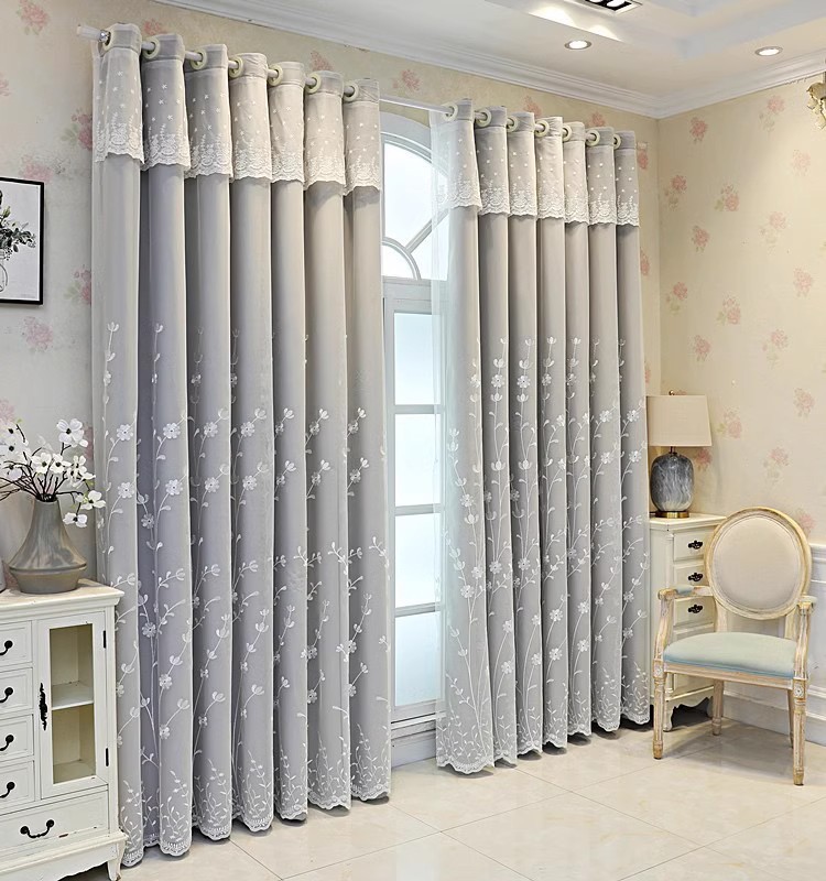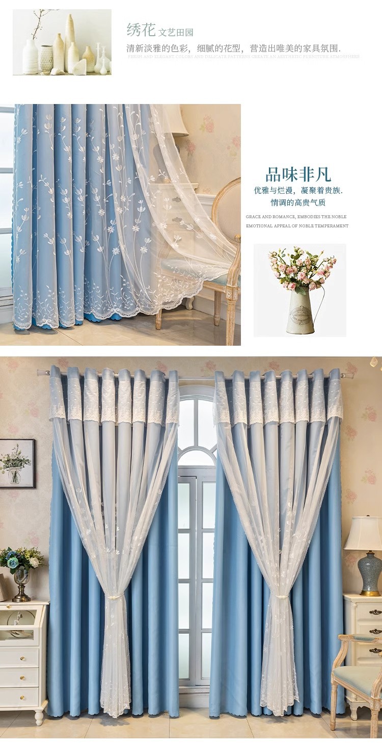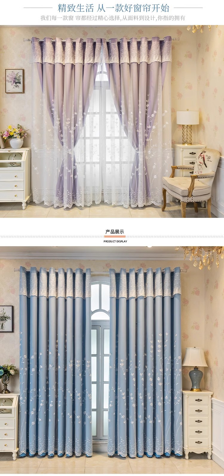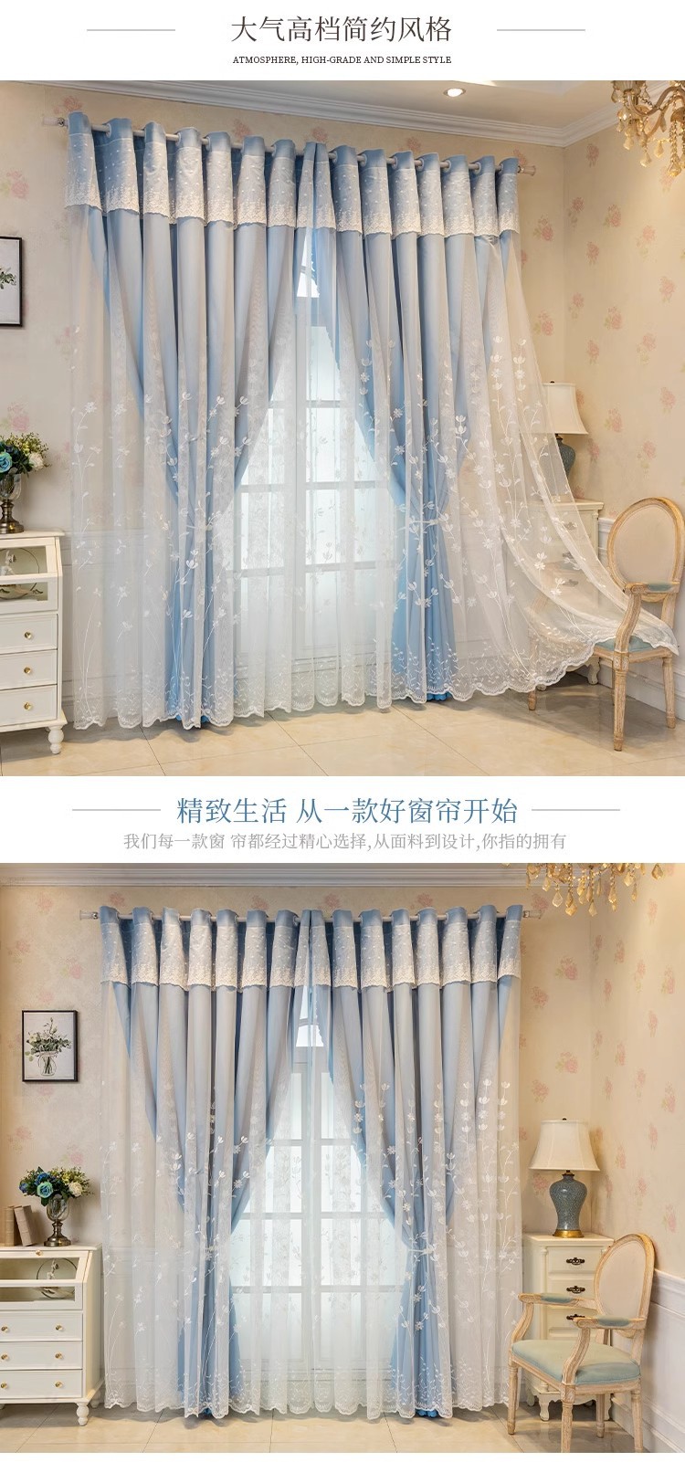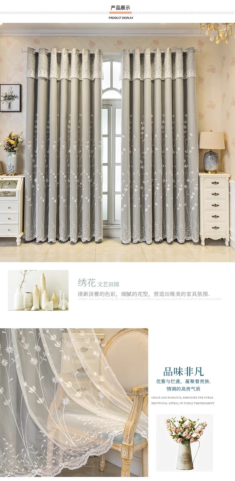 커튼 그늘 작은 신선한 2024 새로운 완성 된 침실 더블 레이어 자수 통합 거실 빛 럭셔리 선 스크린 그늘 천스토어 가기