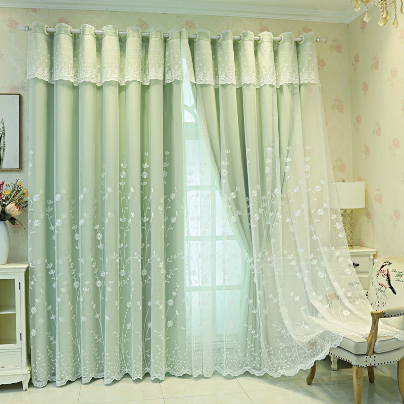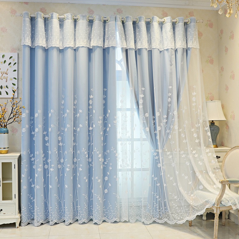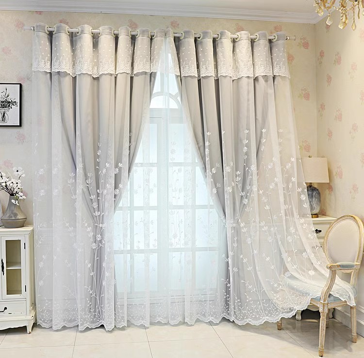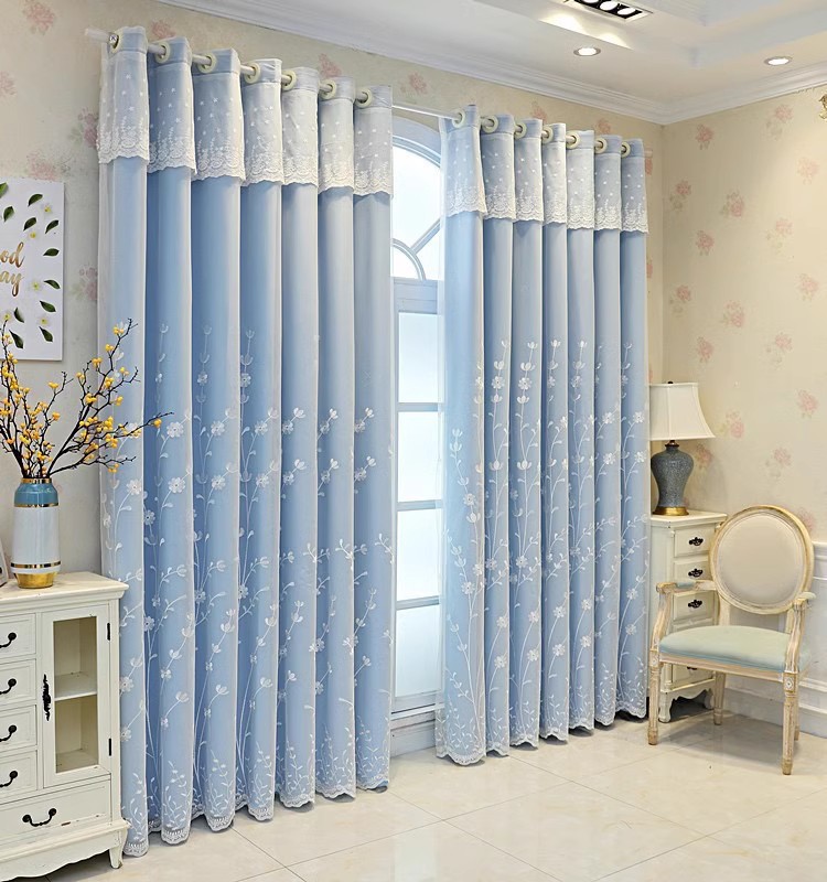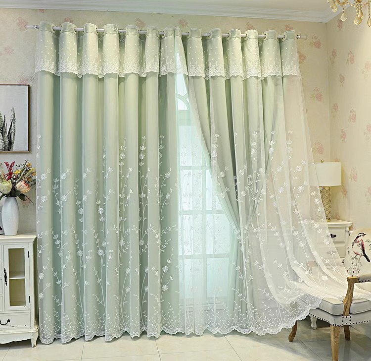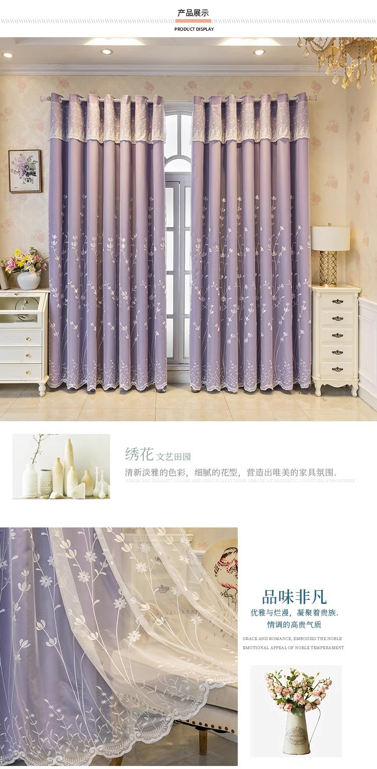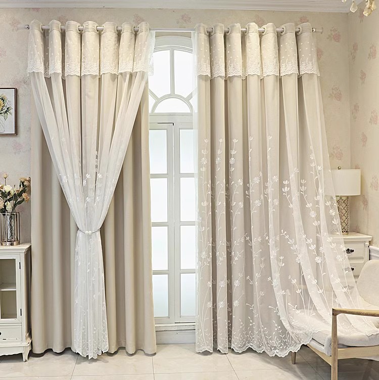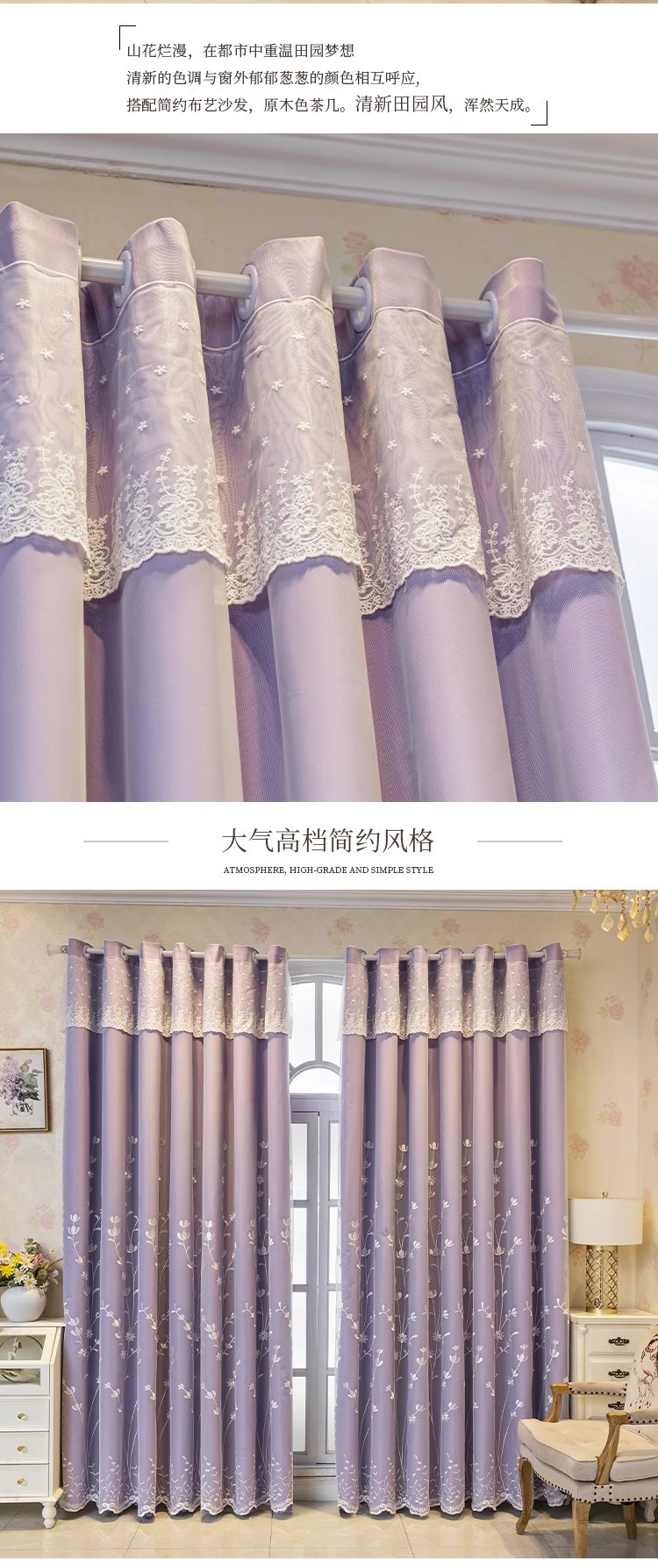 커튼 그늘 작은 신선한 2024 새로운 완성 된 침실 더블 레이어 자수 통합 거실 빛 럭셔리 선 스크린 그늘 천스토어 가기
