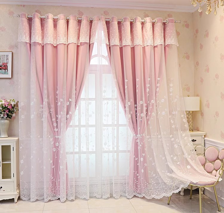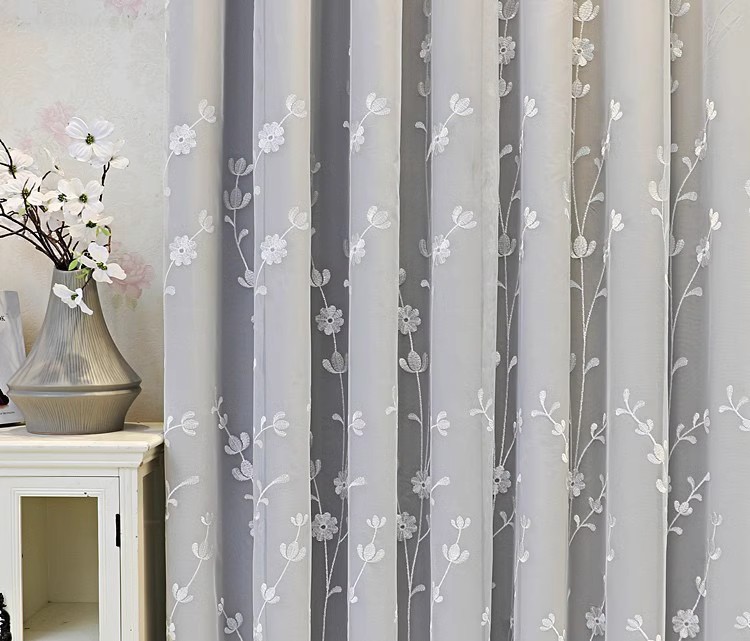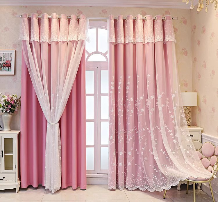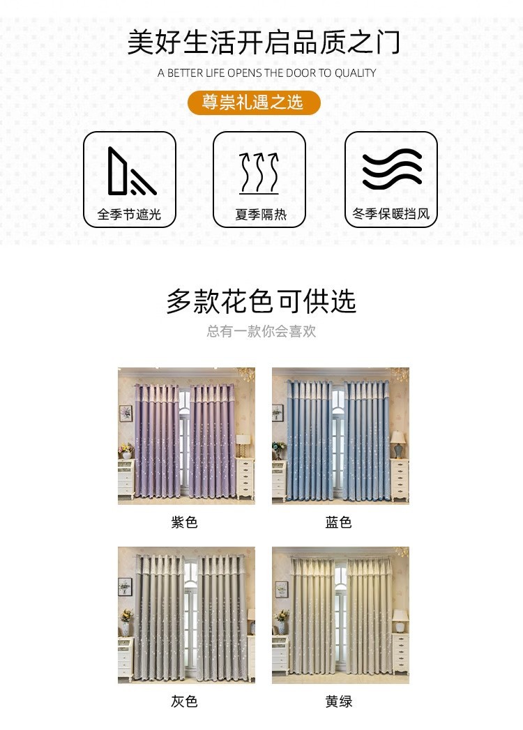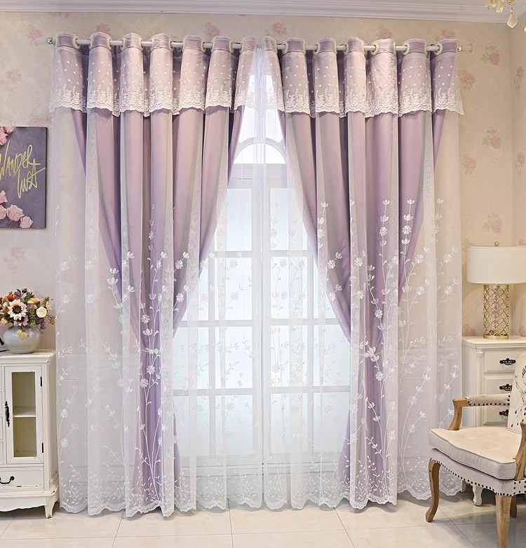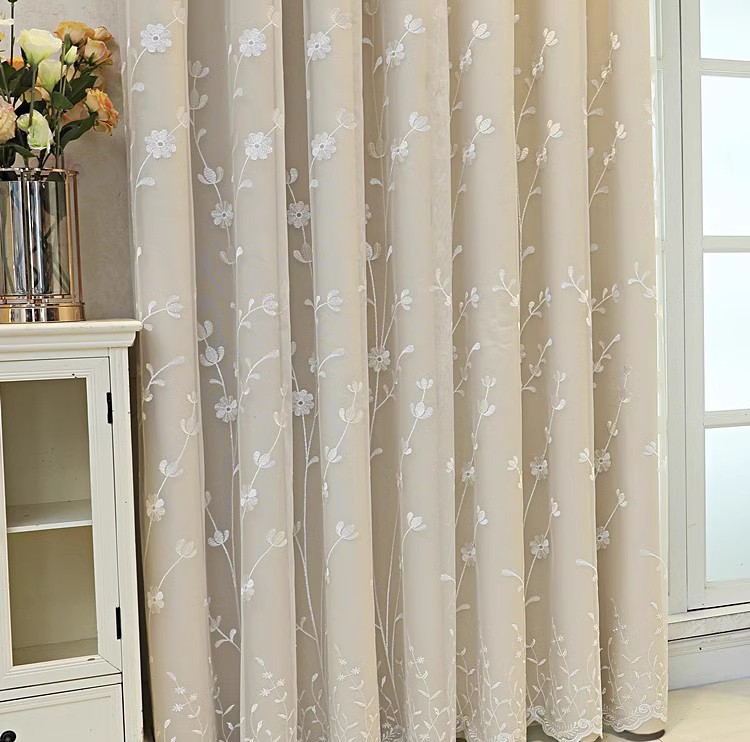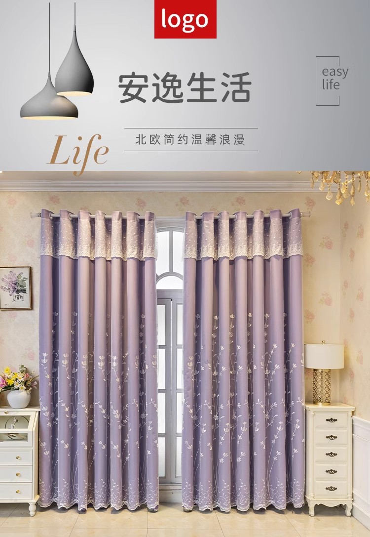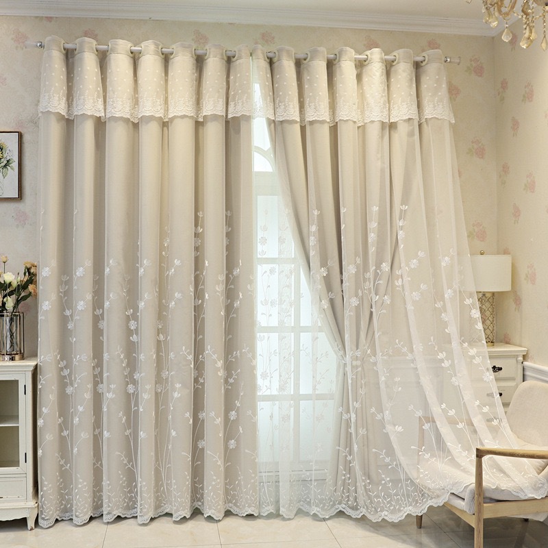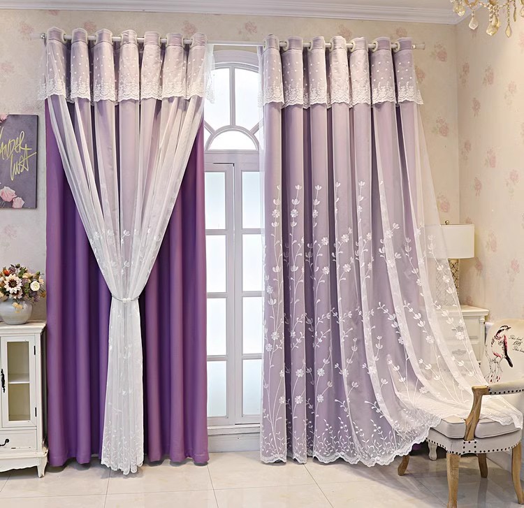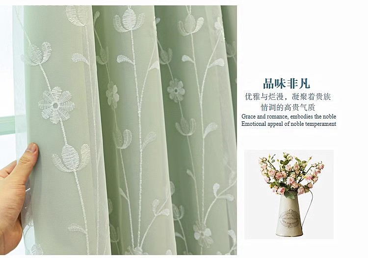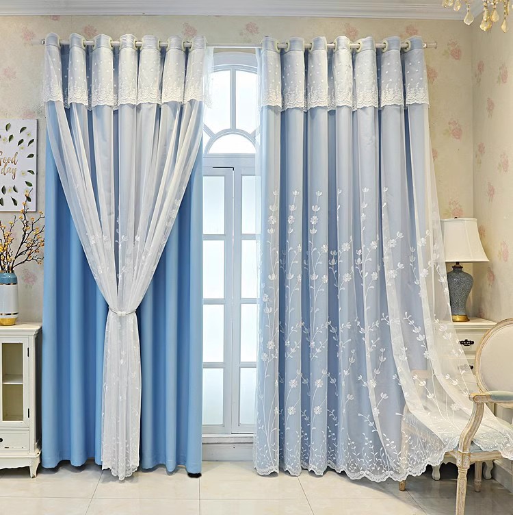 커튼 그늘 작은 신선한 2024 새로운 완성 된 침실 더블 레이어 자수 통합 거실 빛 럭셔리 선 스크린 그늘 천스토어 가기