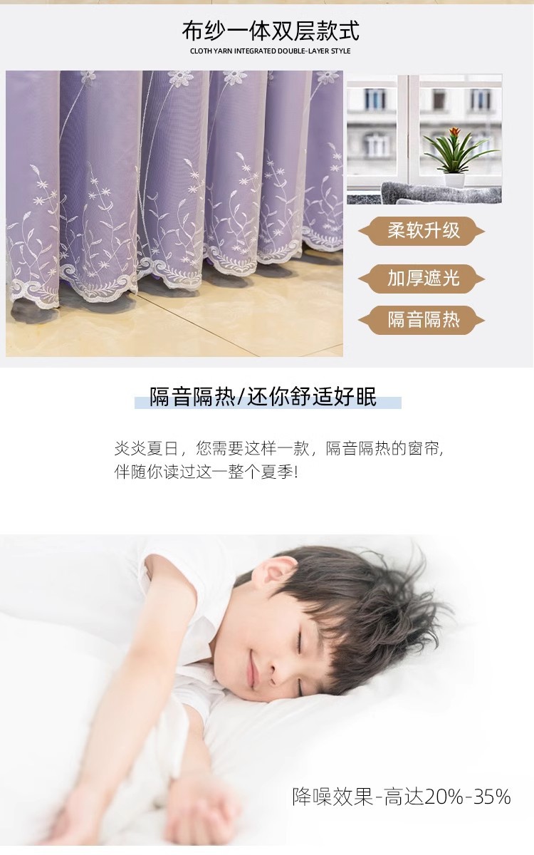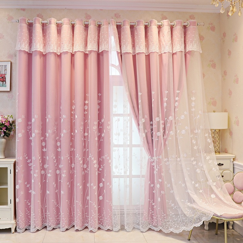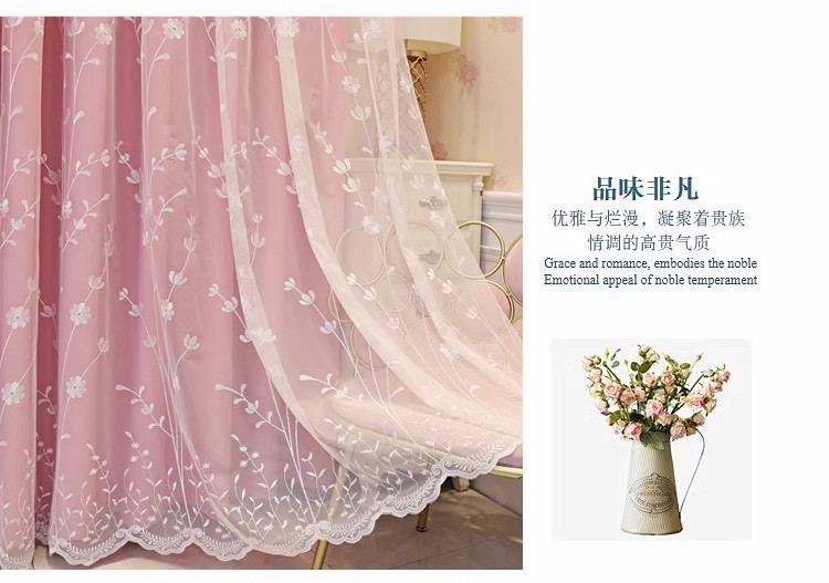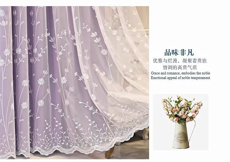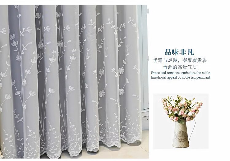 커튼 그늘 작은 신선한 2024 새로운 완성 된 침실 더블 레이어 자수 통합 거실 빛 럭셔리 선 스크린 그늘 천