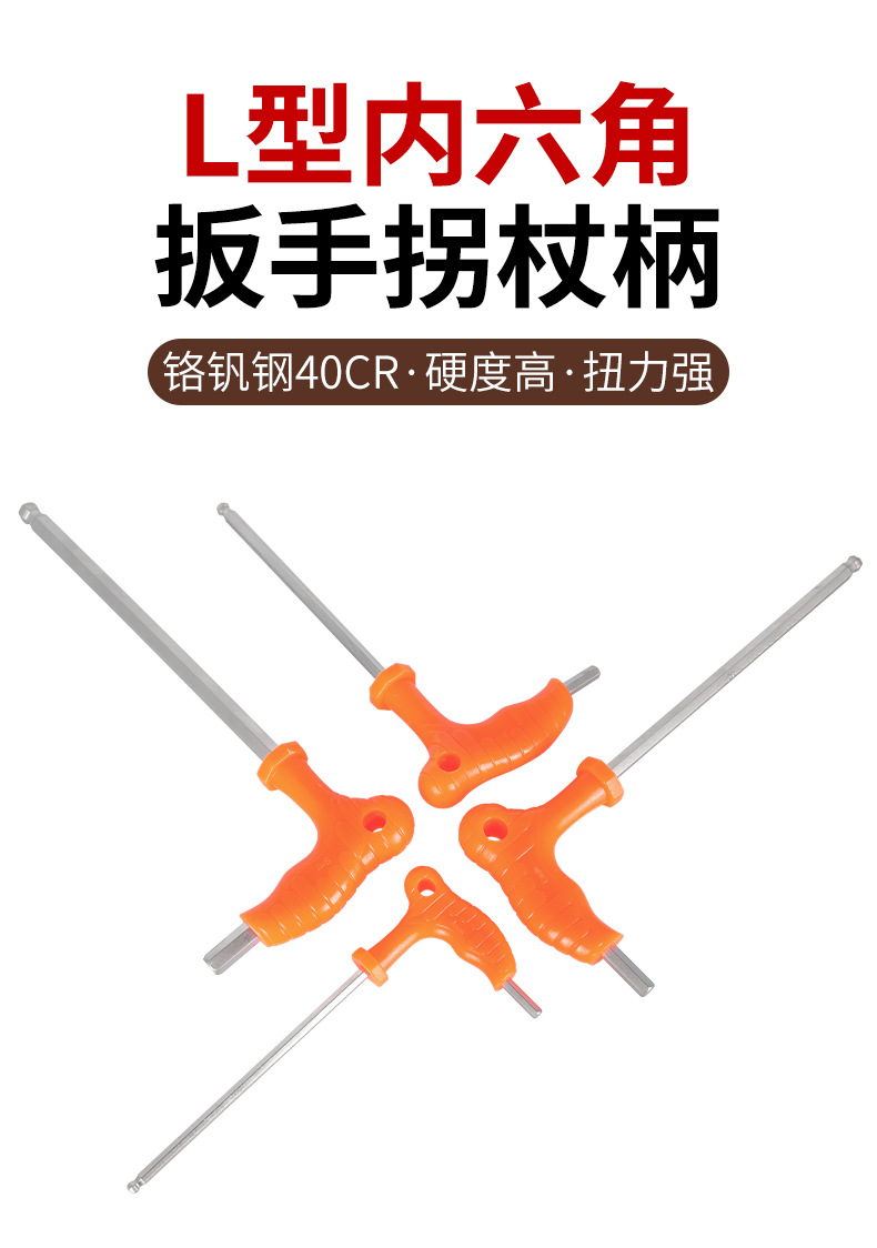 공장 도매 단일 목발 플랫 헤드 볼 헤드 매트 연장 앨런 렌치 플라스틱 핸들 T 자형 육각형