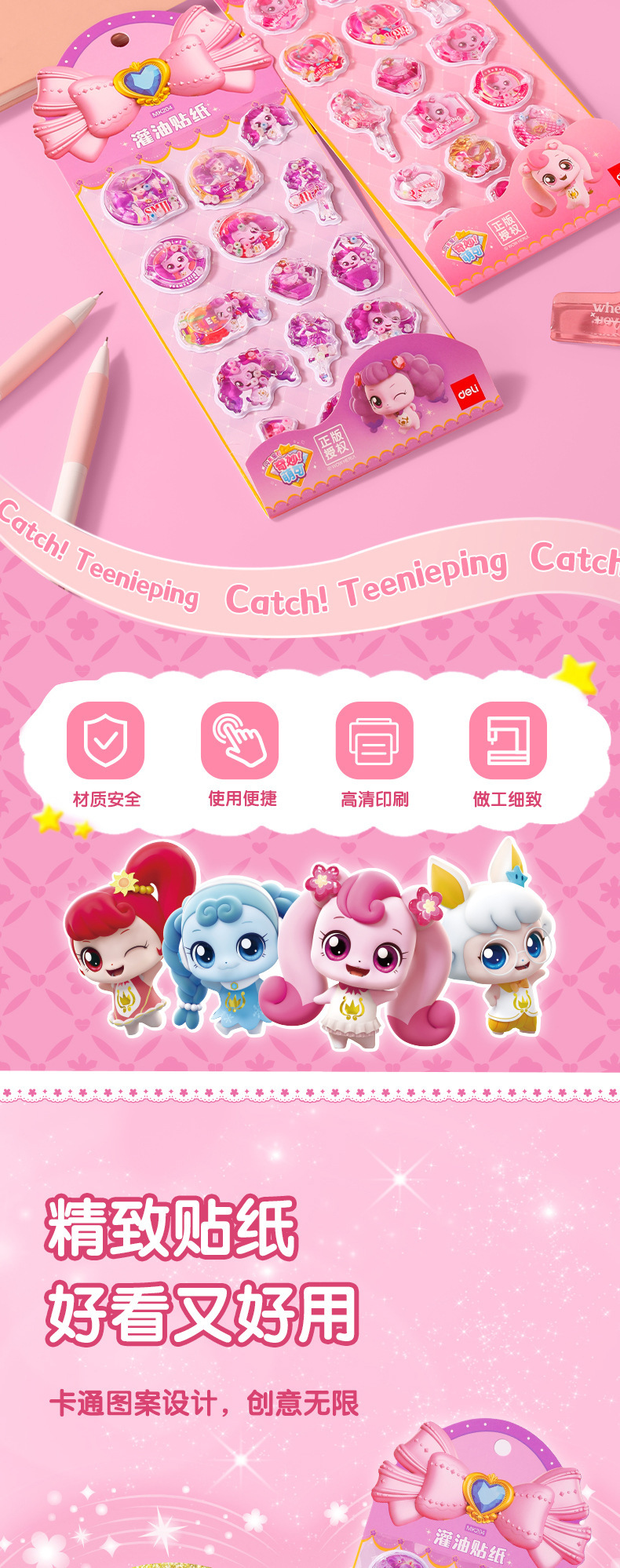 델리 MK204 멋진 Moe 3D 스테레오 오일로 채워진 스티커 어린이 만화 HD 양각 스티커 소재 안전
