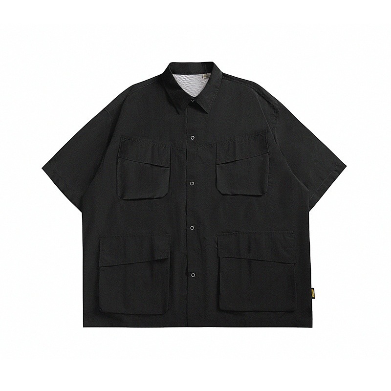일본식 빈티지 툴링 반팔 셔츠 남자 여름 플러스 사이즈 캐주얼 루즈 멀티 포켓 반소매 올 매치 셔츠 재킷스토어 가기