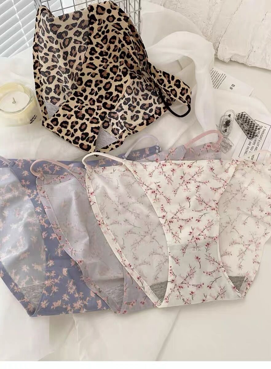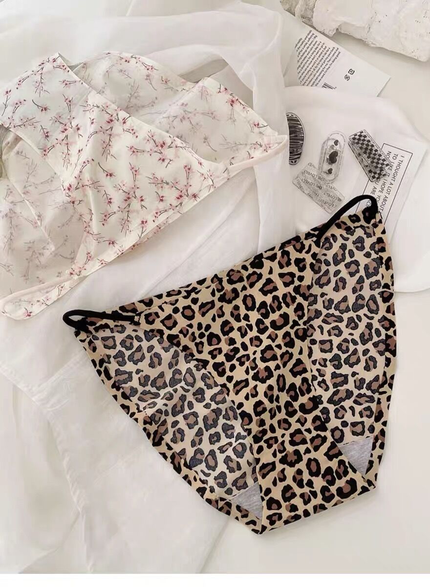 아이스 실크 섹시한 레오파드 무늬 소녀 속옷 여성의 낮은 허리 브리프 추적없는 순수한 욕망 스트랩 높은 분할 여성용 G-스트링