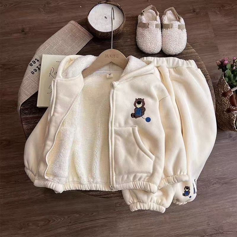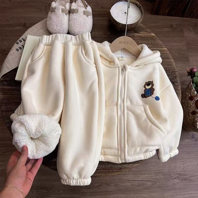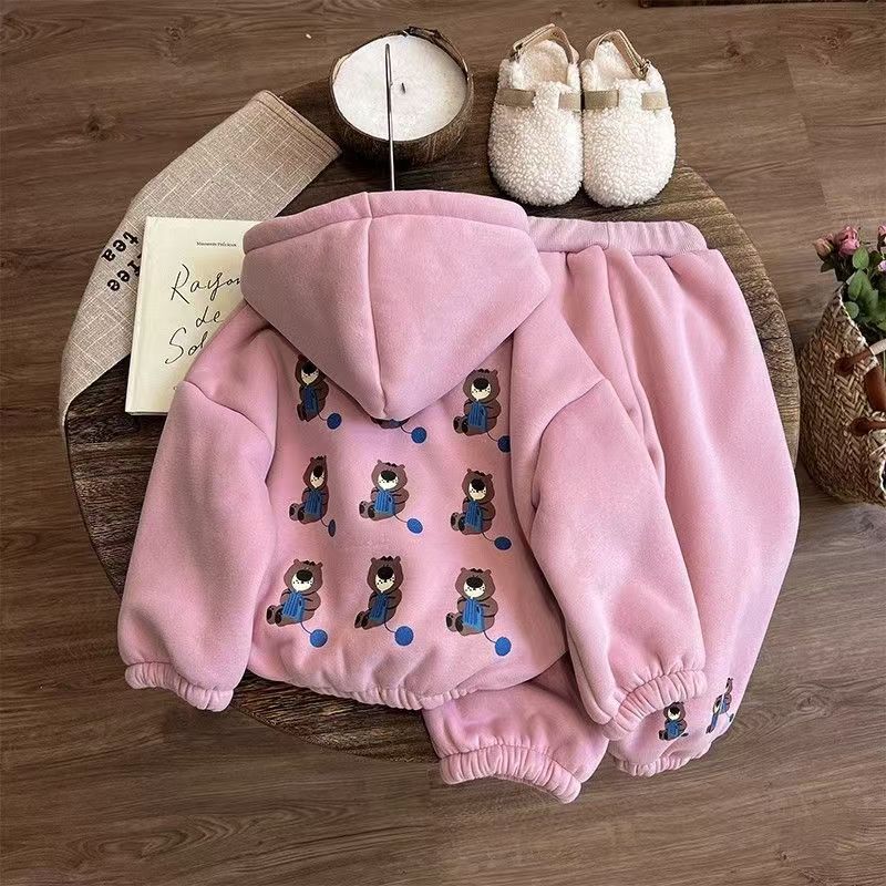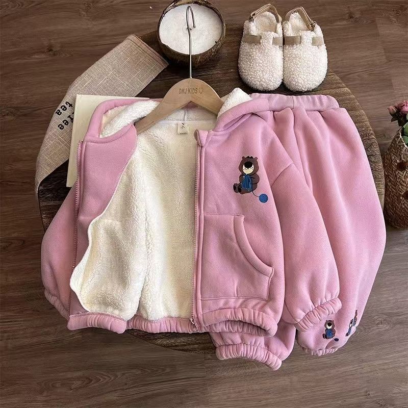 2024 겨울 새 여아 아기 여아 벨벳 코트 여아 어린이 겨울 두꺼운 옷 세트 2 피스 세트