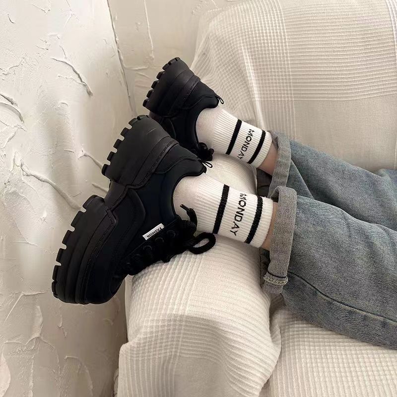 폭발 2024 봄과 가을 새로운 슈퍼 파이어 머핀 캐주얼 운동화 두꺼운 밑창 작은 흰색 신발 여성의 다용도 보드 신발 증가스토어 가기
