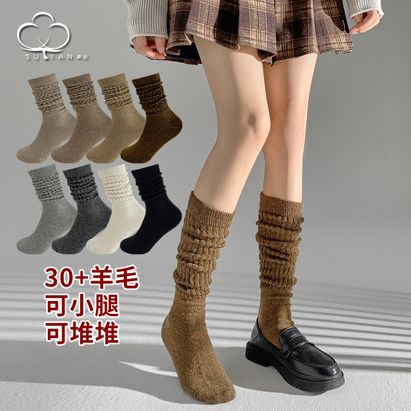 겨울 양모 양말 어린이 발 양말 기모 쌓인 양말 두꺼운 따뜻한 긴 양말 여성 수직 스타킹 여성 유행 스타킹스토어 가기