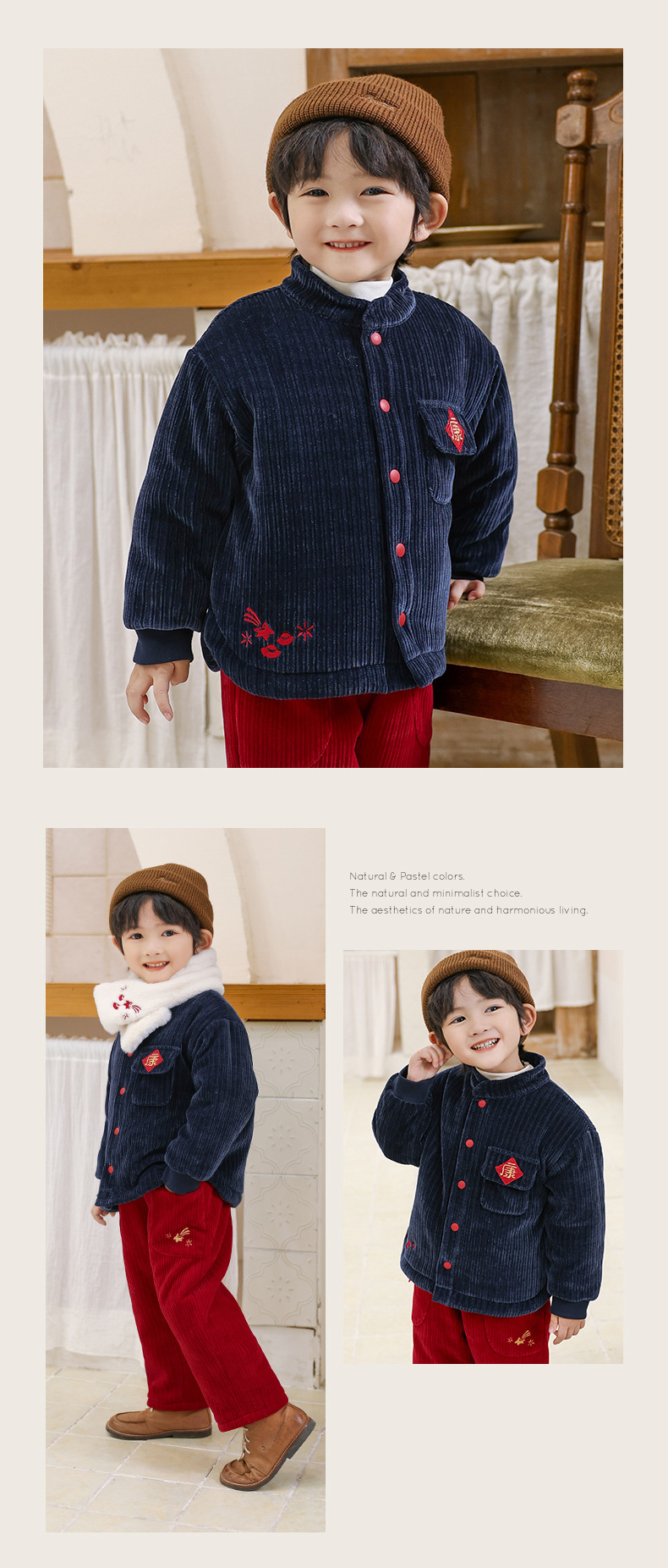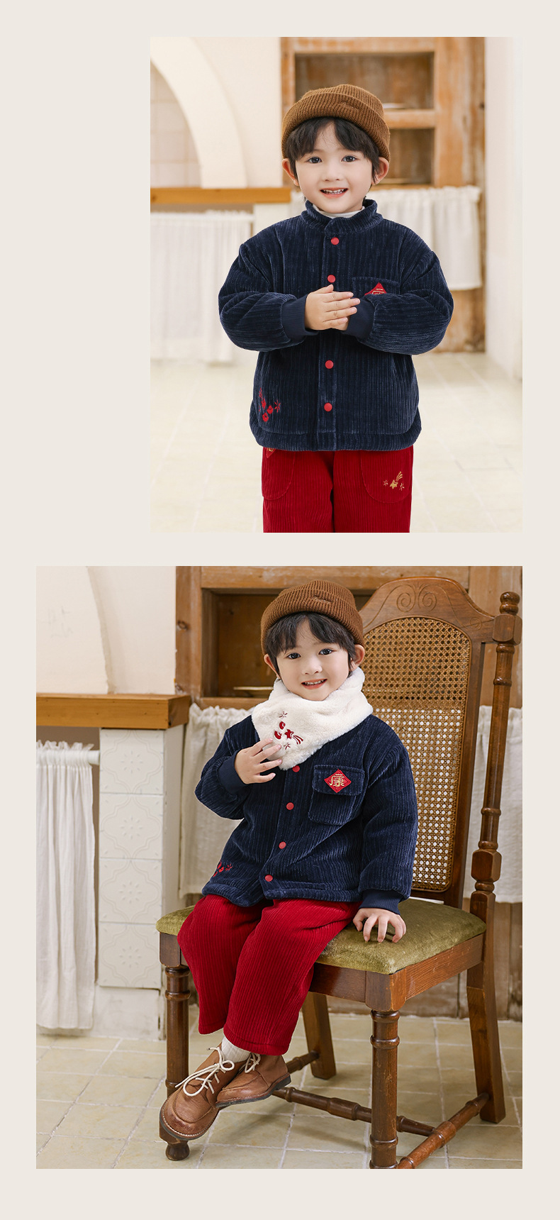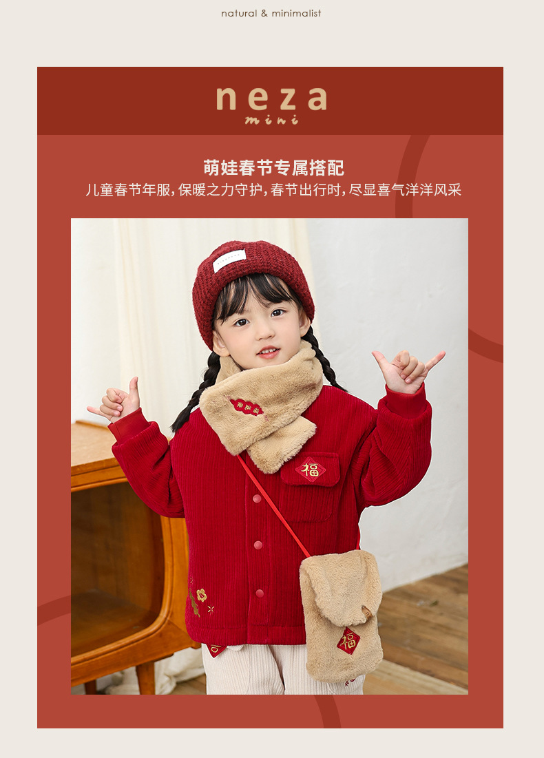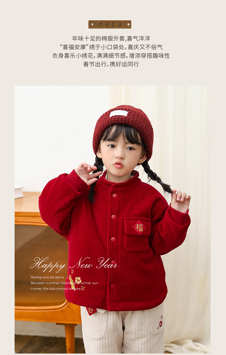 Neza 미니 어린이 가을 및 겨울 코트 새해 인사말 옷 코튼 새로운 중국 스타일 두꺼운 칼라 탑 축제스토어 가기