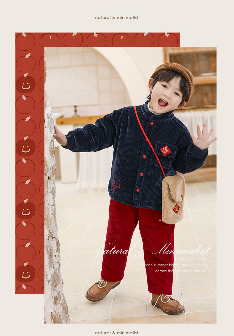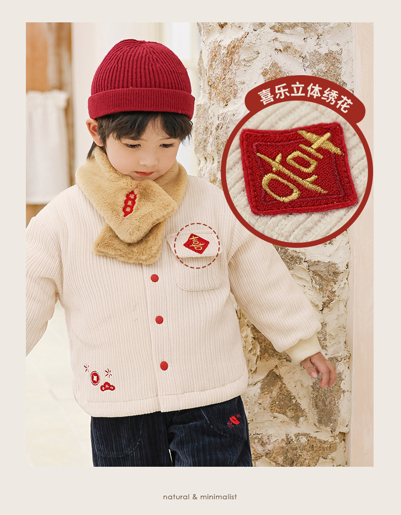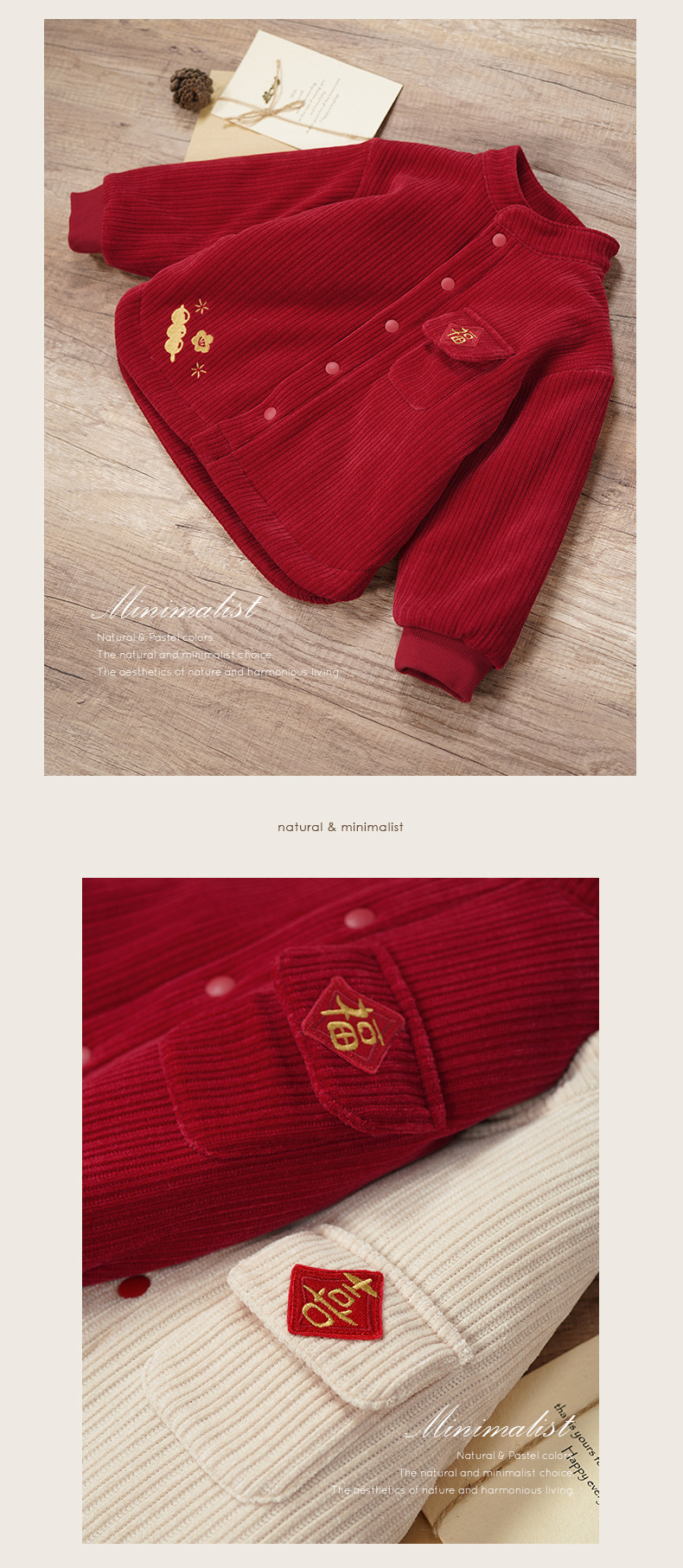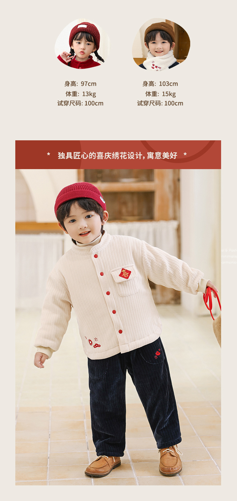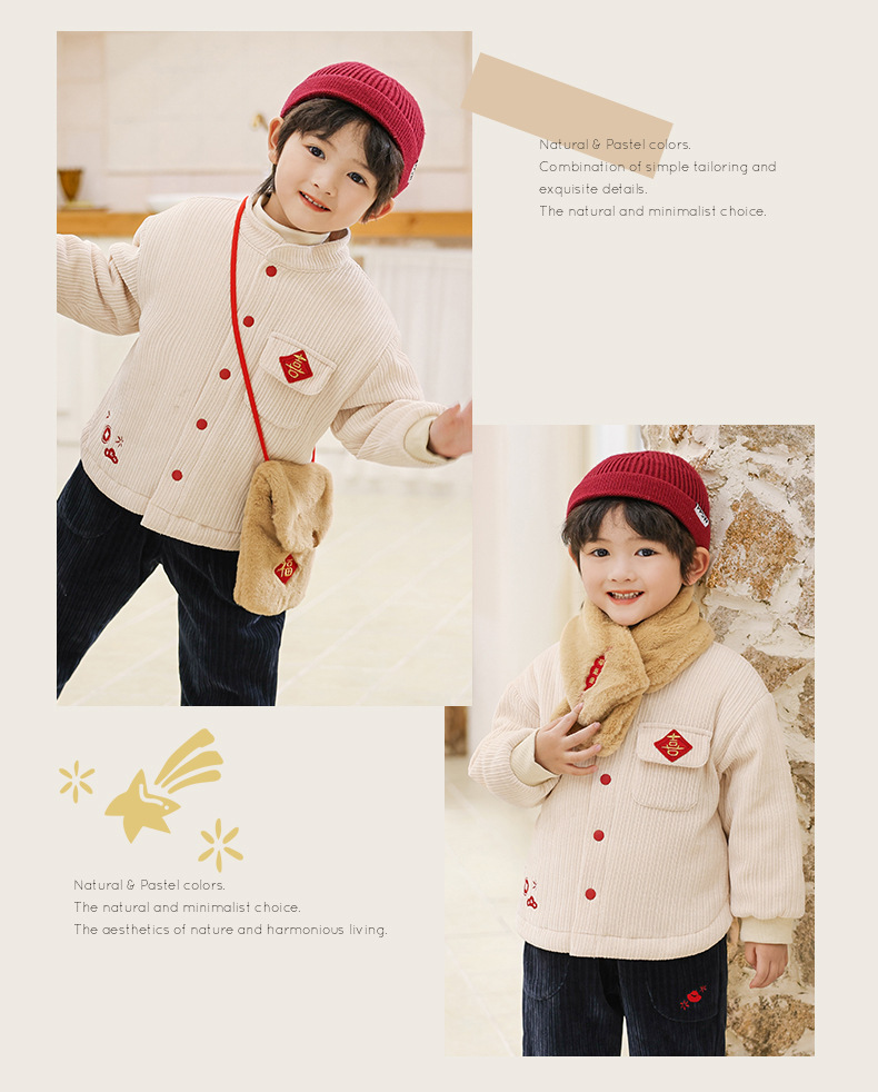 Neza 미니 어린이 가을 및 겨울 코트 새해 인사말 옷 코튼 새로운 중국 스타일 두꺼운 칼라 탑 축제스토어 가기