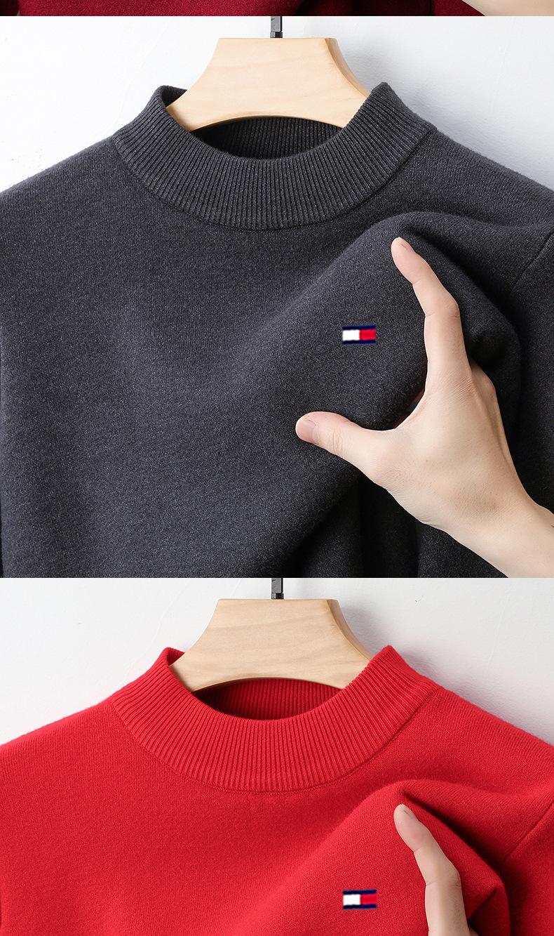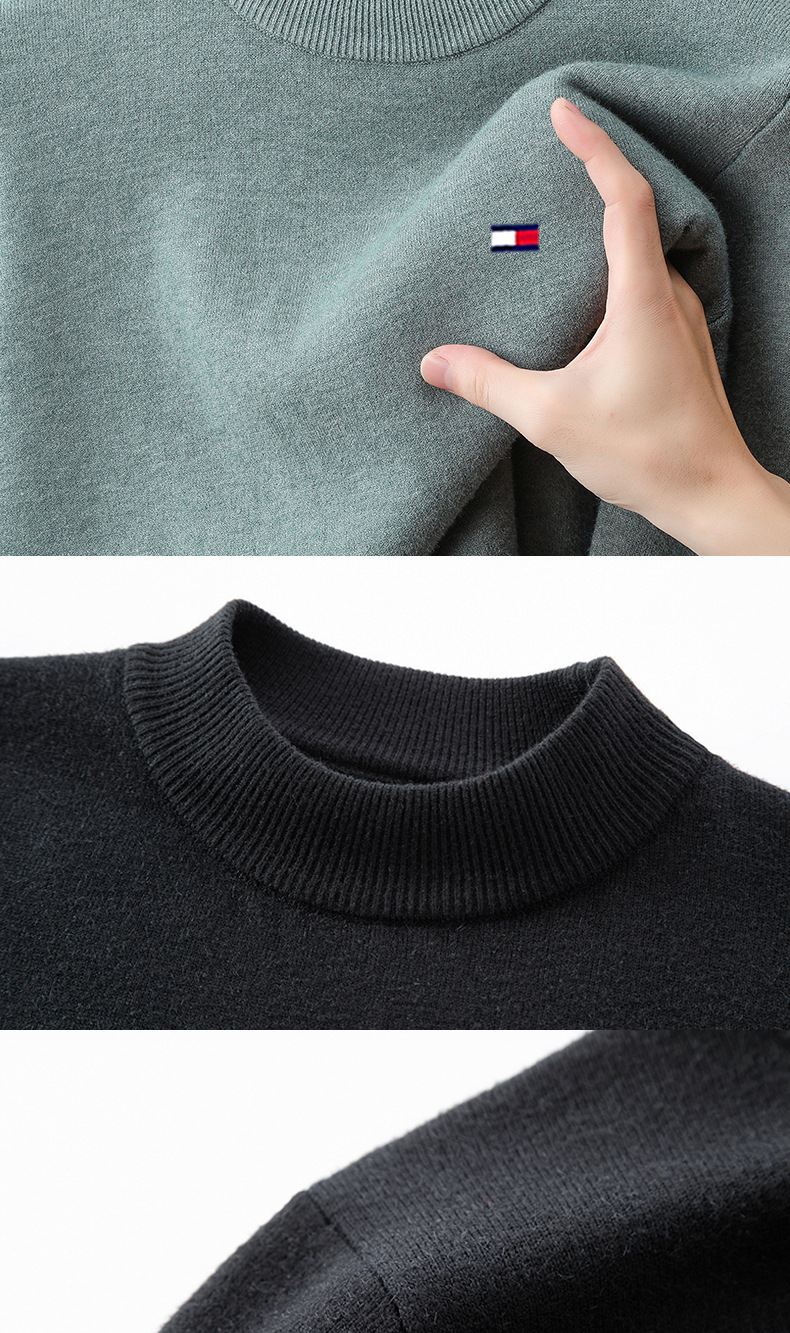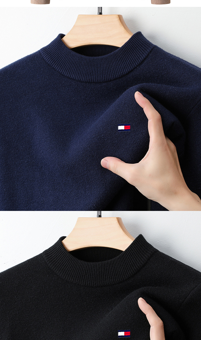토미 토미 하프 하이 칼라 남자 캐시미어 가을과 겨울 새 기모 두꺼운 긴 소매 니트베이스 셔츠 스웨터