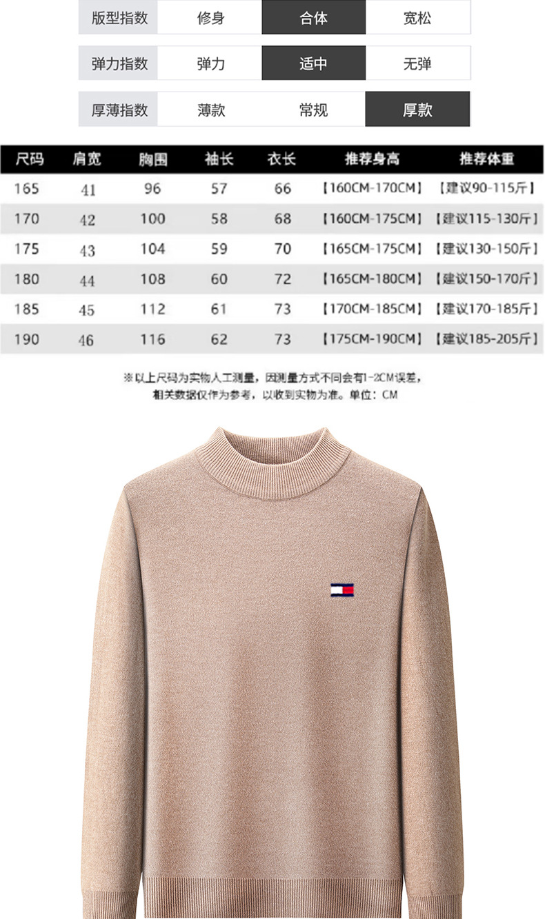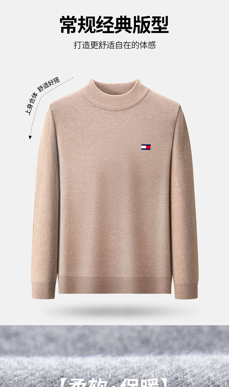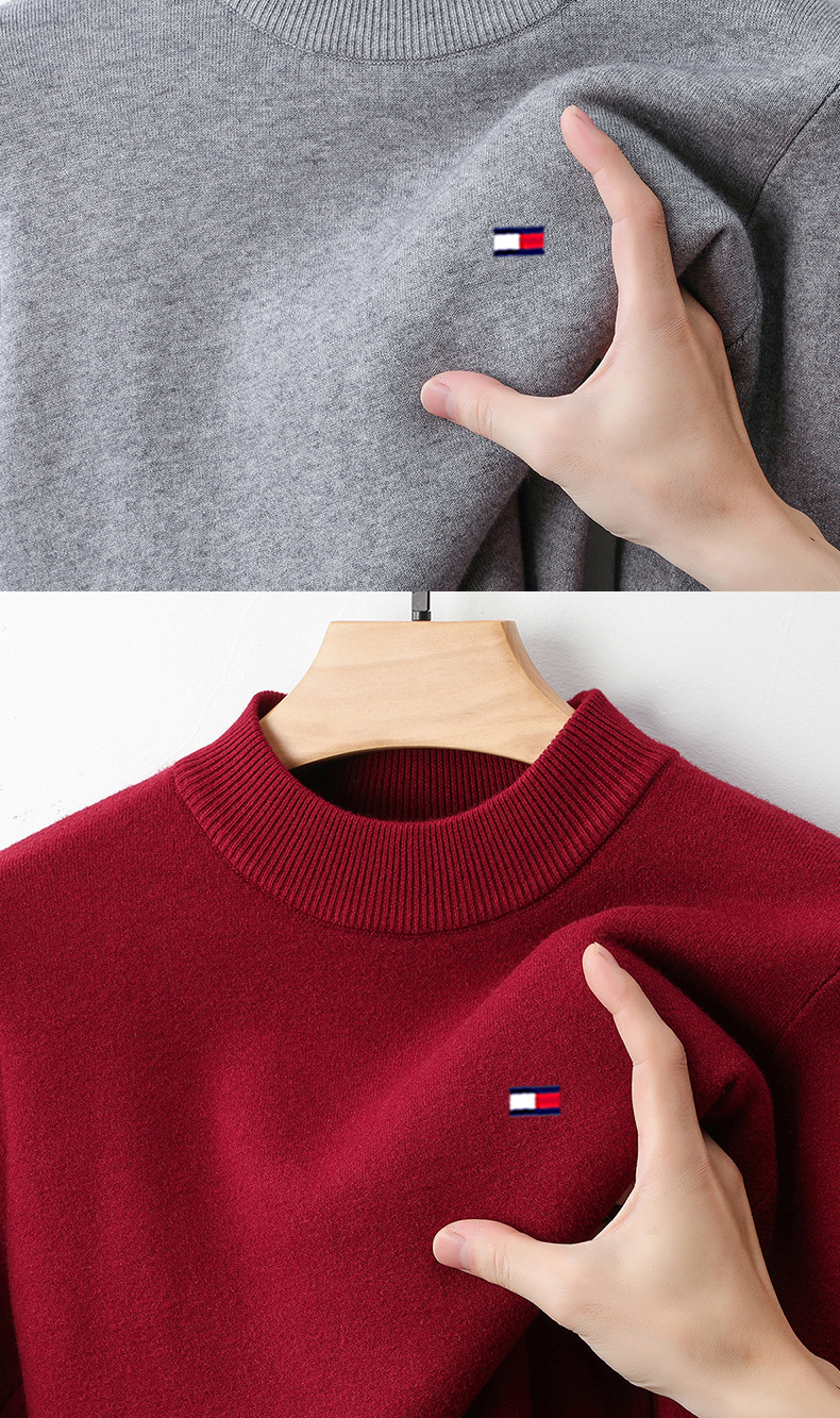 토미 토미 하프 하이 칼라 남자 캐시미어 가을과 겨울 새 기모 두꺼운 긴 소매 니트베이스 셔츠 스웨터