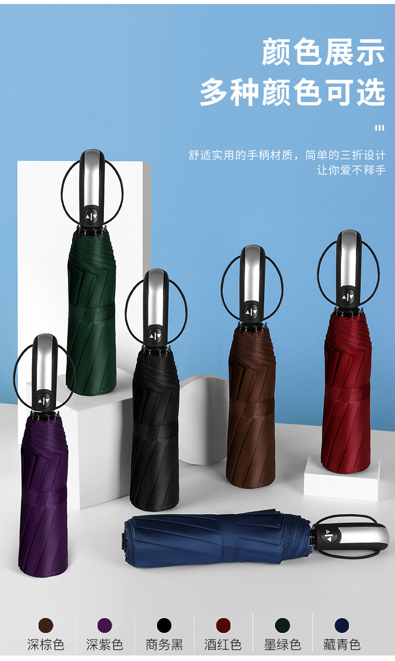 폭풍 방지 열 뼈 비즈니스 선물 우산 광고 우산 맞춤형 인쇄 로고 비닐 태양 우산 자동 3 배 우산스토어 가기