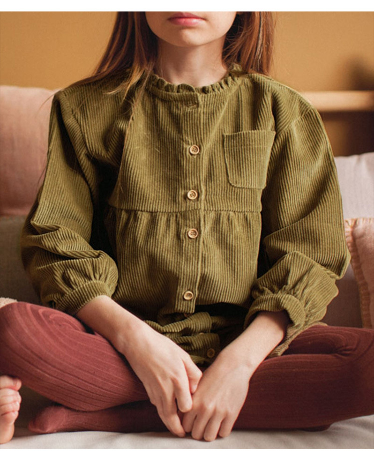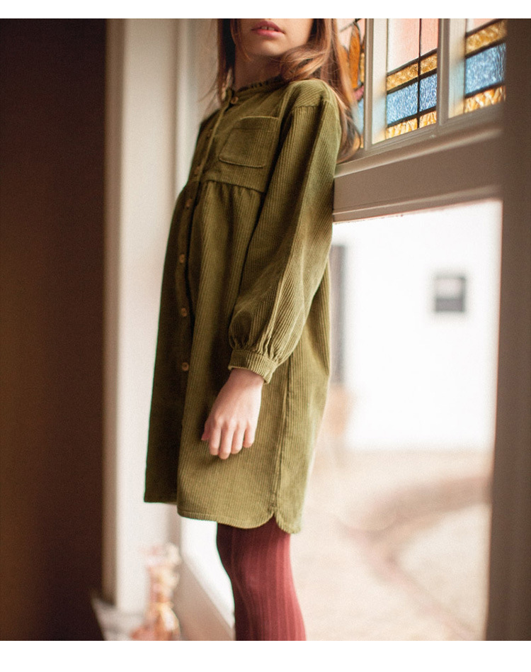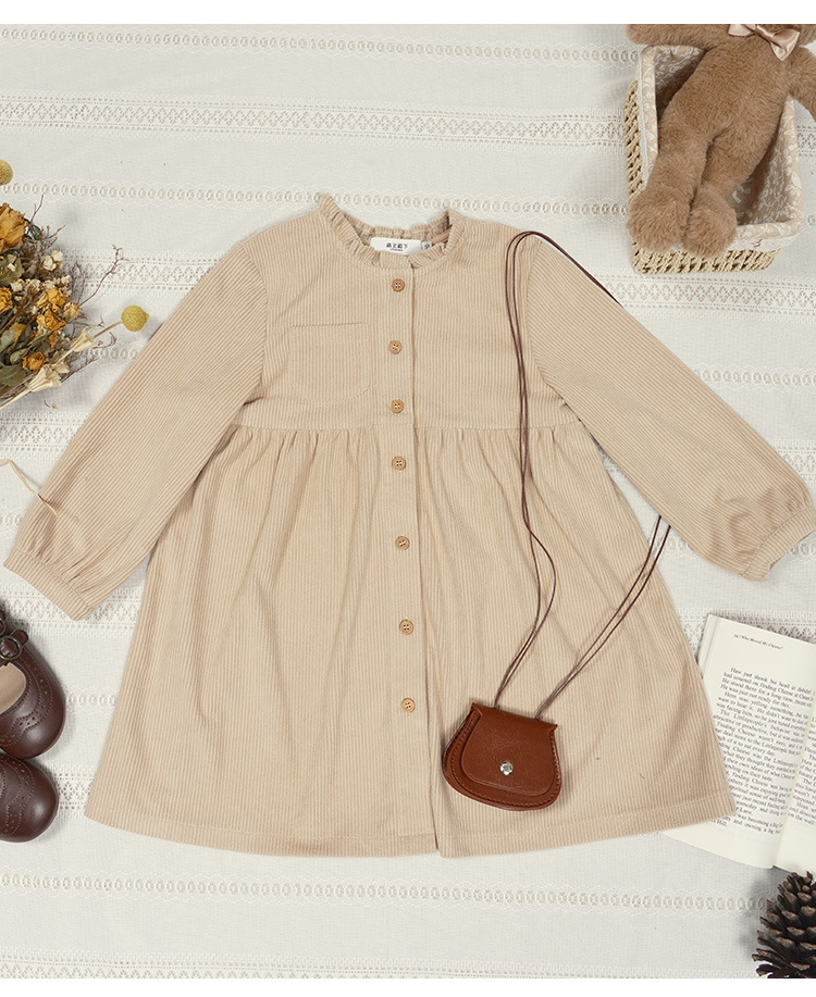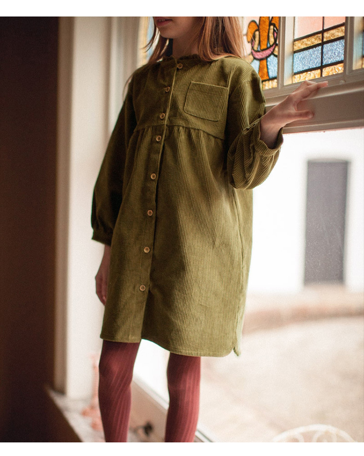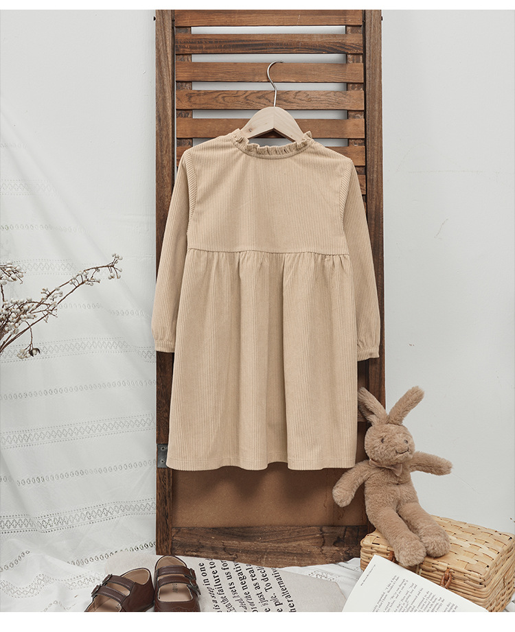 프론트 패치 포켓 코듀로이 드레스 25 새로운 포레스트 스타일 레이스 라운드 넥 아동 스커트 따뜻한 하이 웨이스트 A 라인 스커트스토어 가기