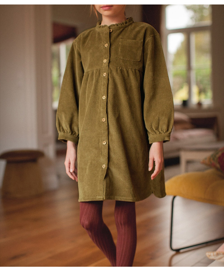 프론트 패치 포켓 코듀로이 드레스 25 새로운 포레스트 스타일 레이스 라운드 넥 아동 스커트 따뜻한 하이 웨이스트 A 라인 스커트