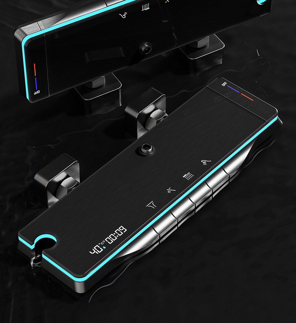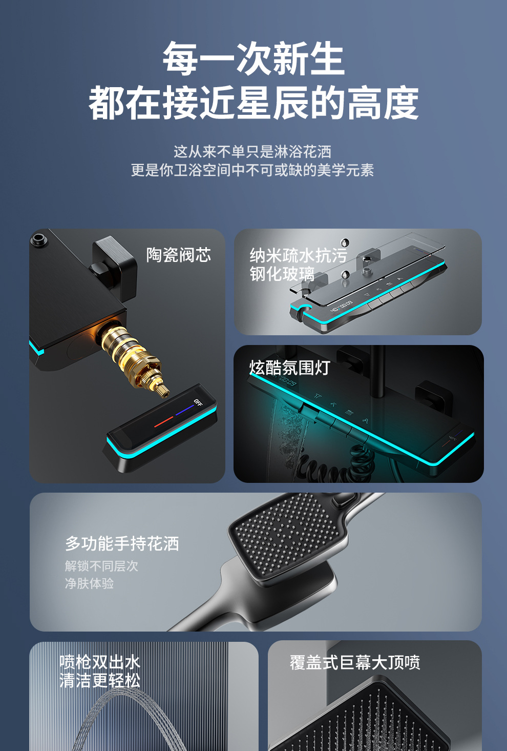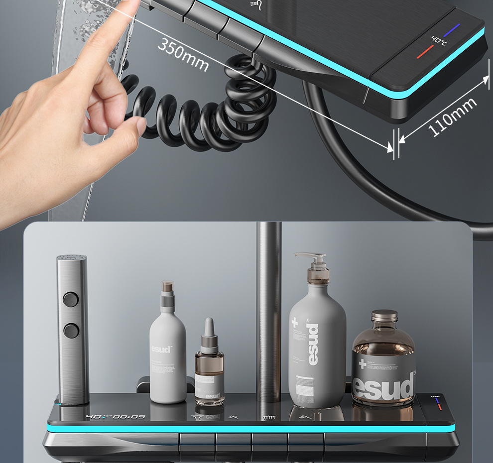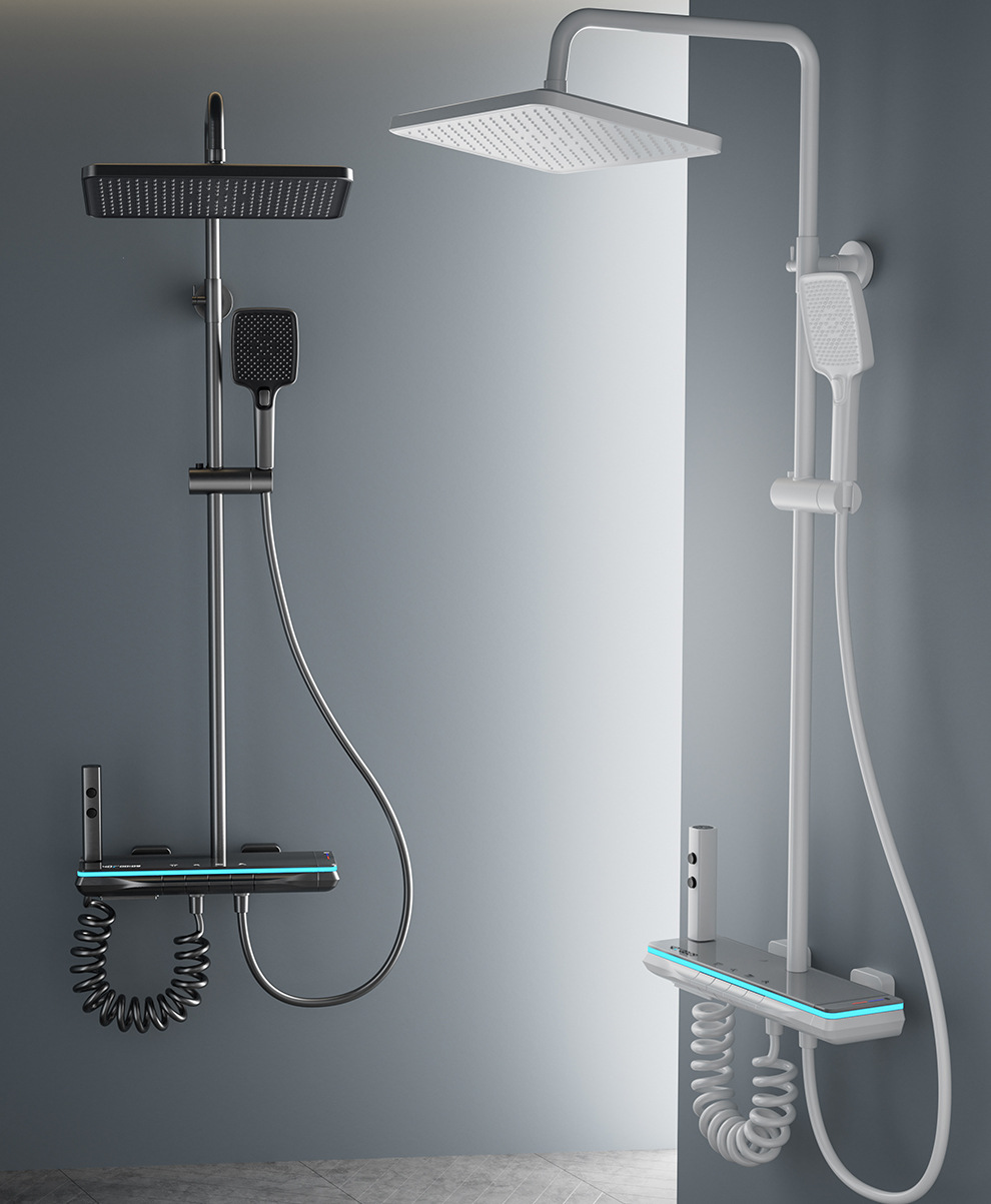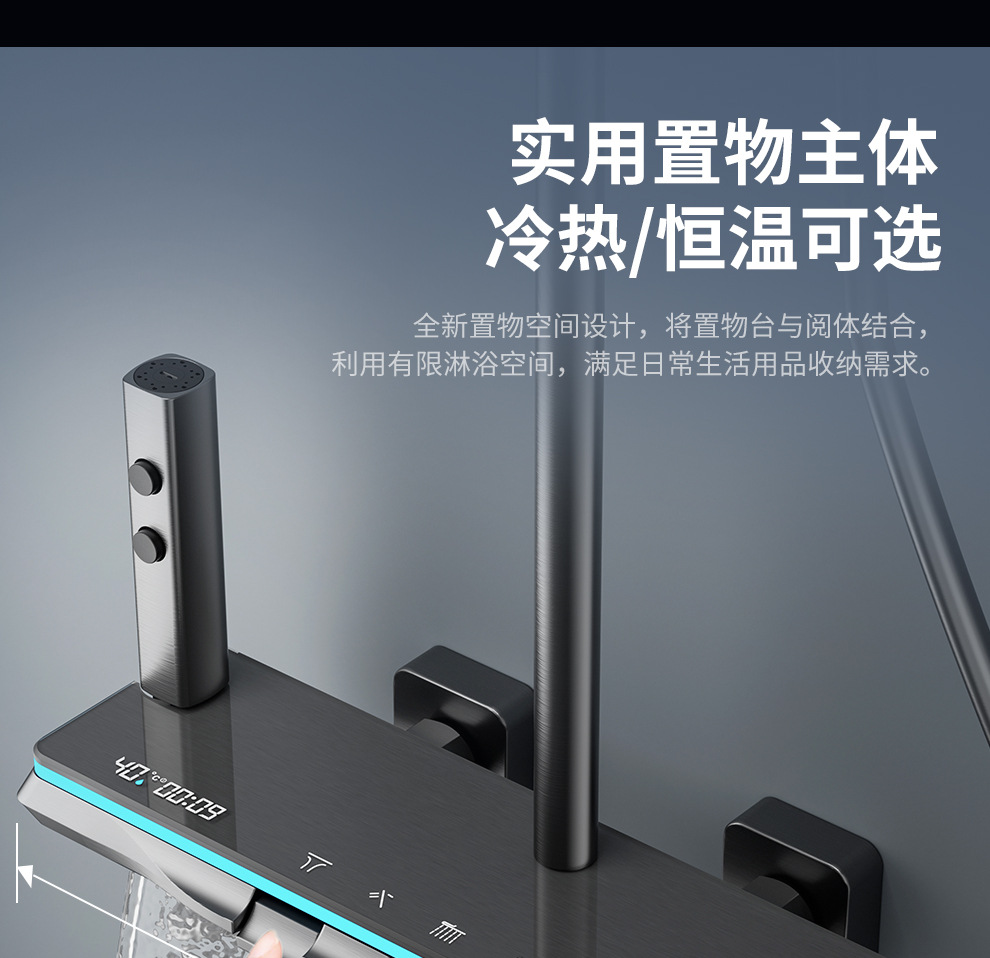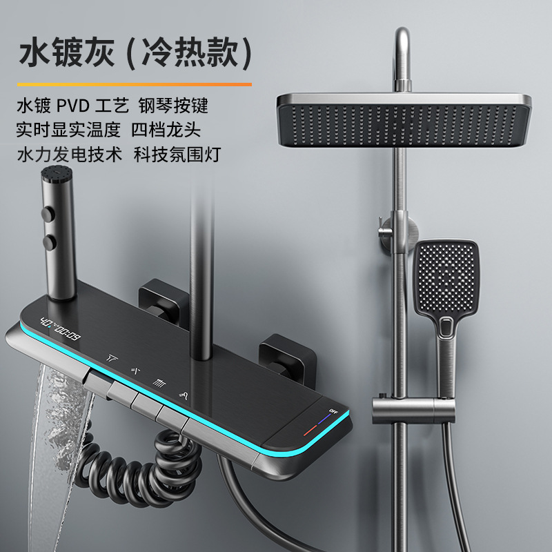 총 회색 온도 조절 샤워 샤워 세트 디지털 디스플레이 샤워 욕조 가정용 욕실 압력 샤워 가구스토어 가기