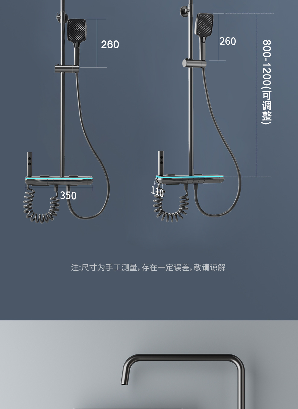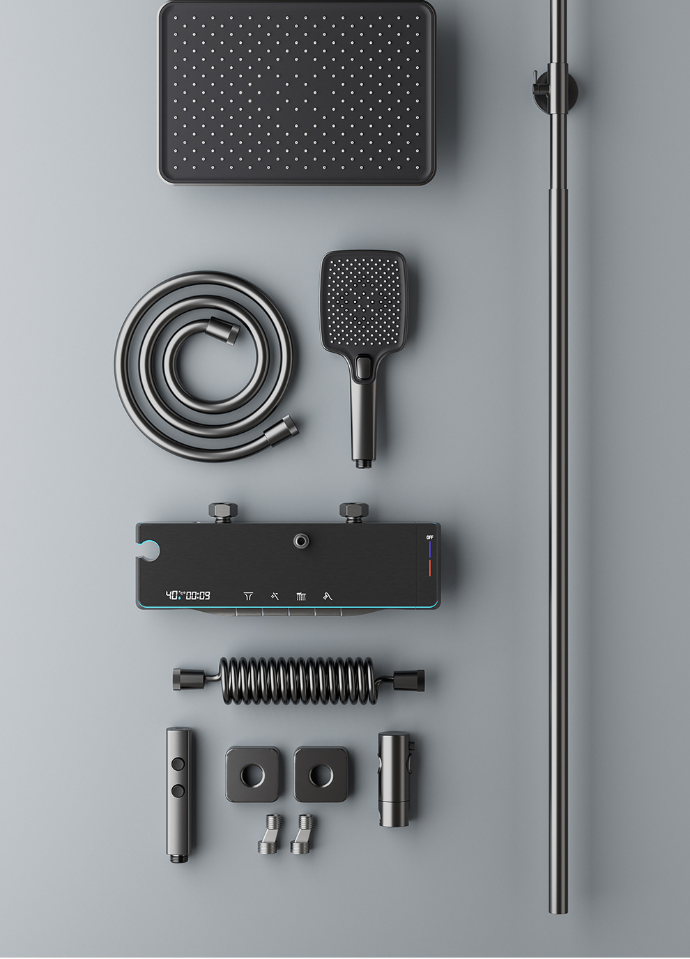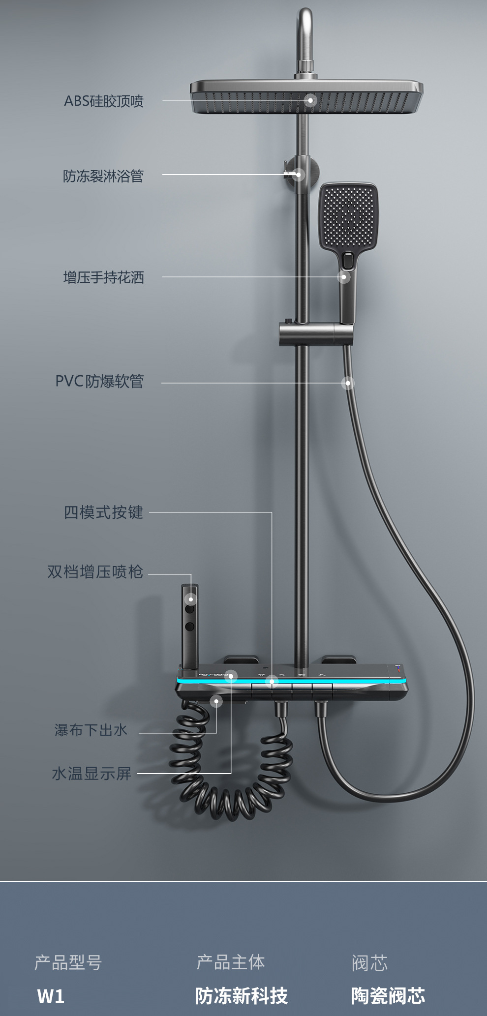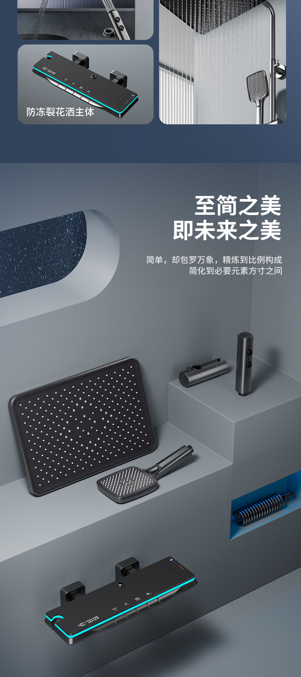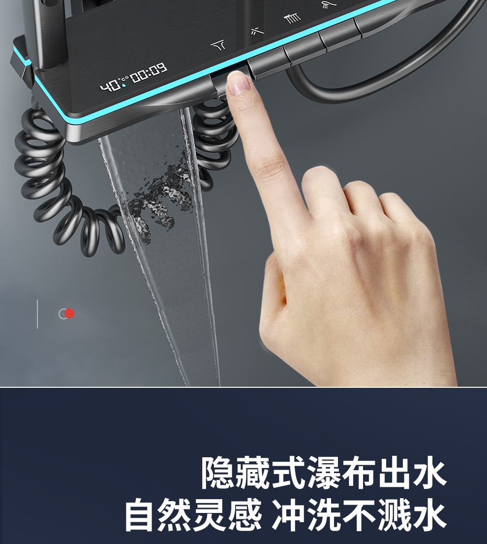 총 회색 온도 조절 샤워 샤워 세트 디지털 디스플레이 샤워 욕조 가정용 욕실 압력 샤워 가구스토어 가기