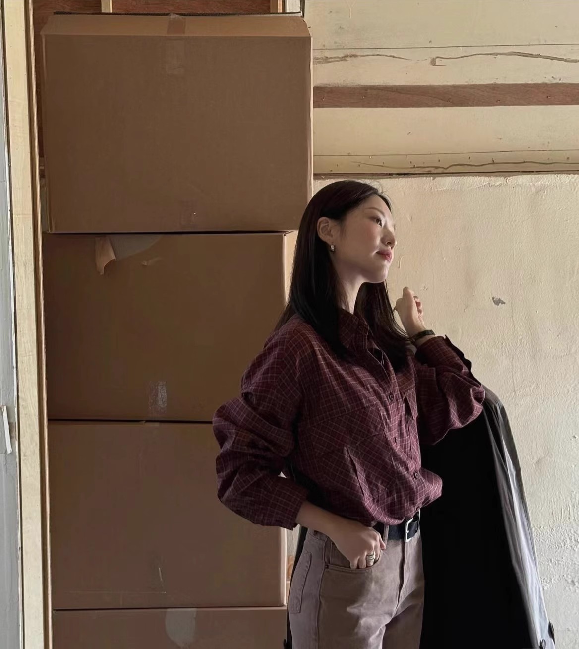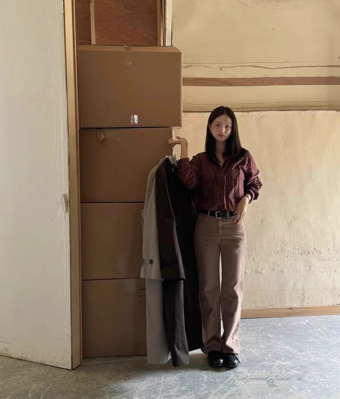 한국 ged 24 새로운 BECKY 격자 무늬 셔츠스토어 가기