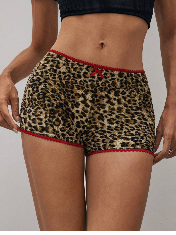 유럽 및 미국 아마존 독립 사이트 호피무늬 여성 패션 캐주얼 편안한 슬림핏 작은 리본 섹시 반바지스토어 가기