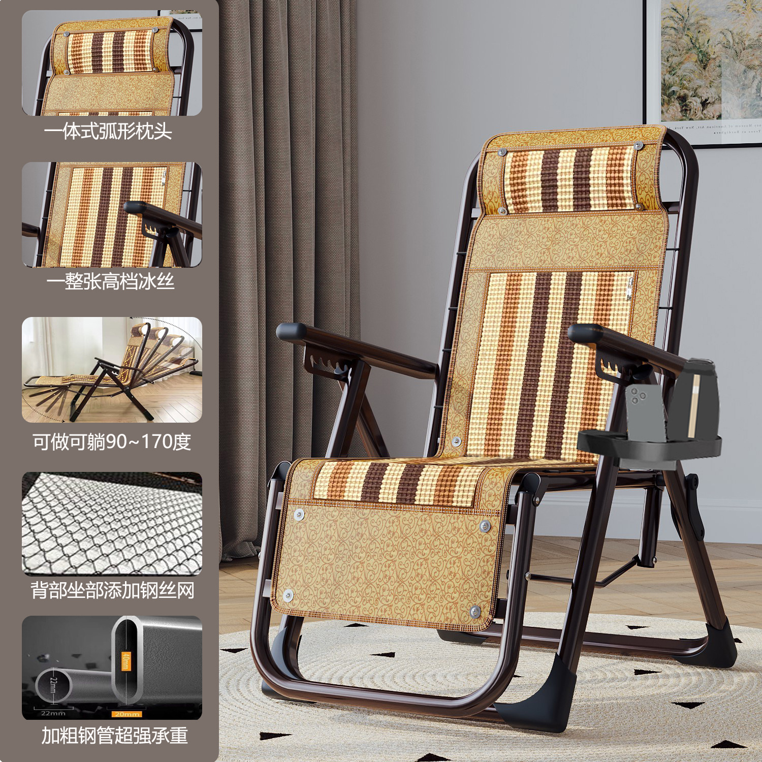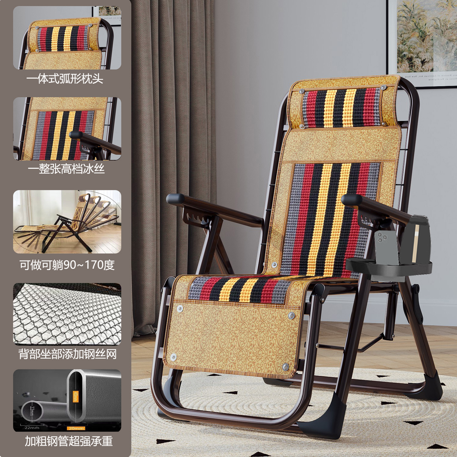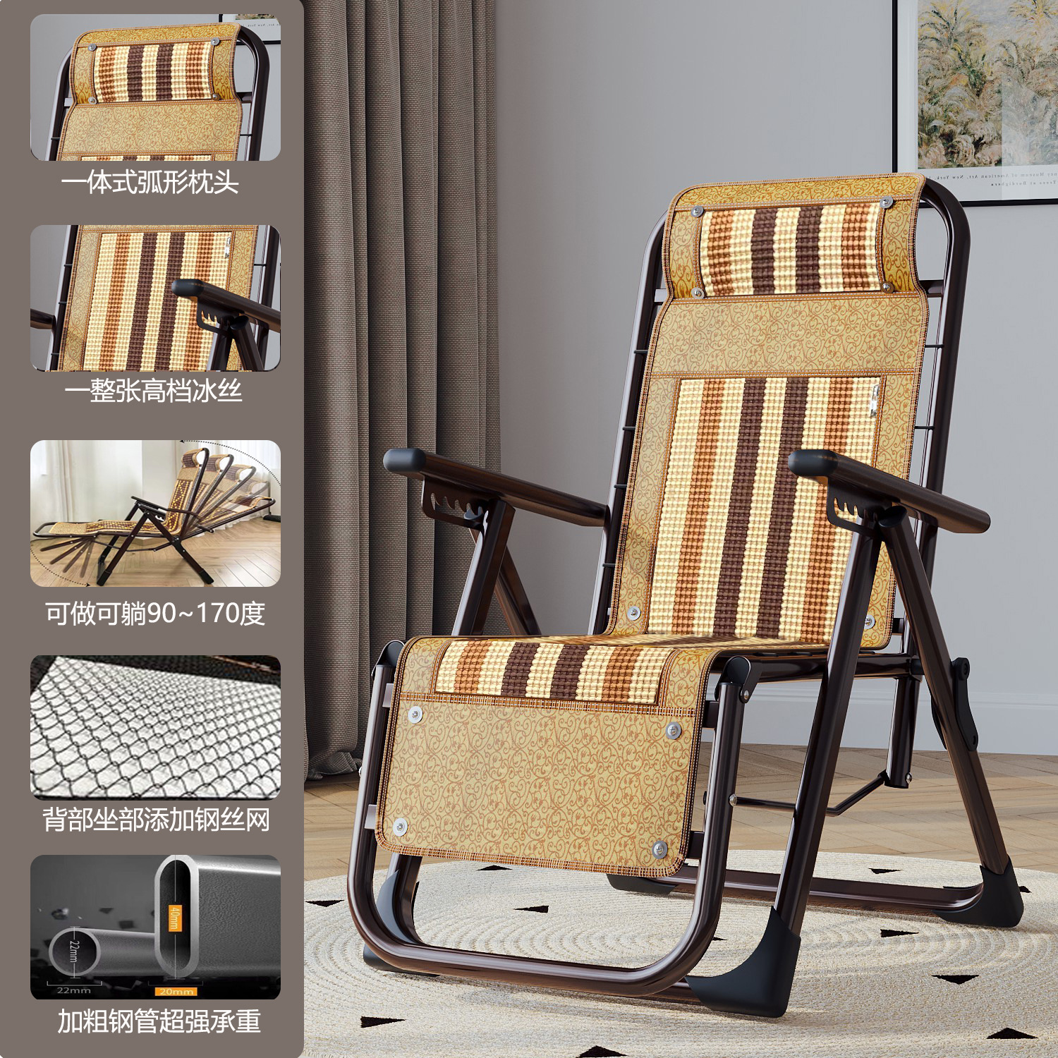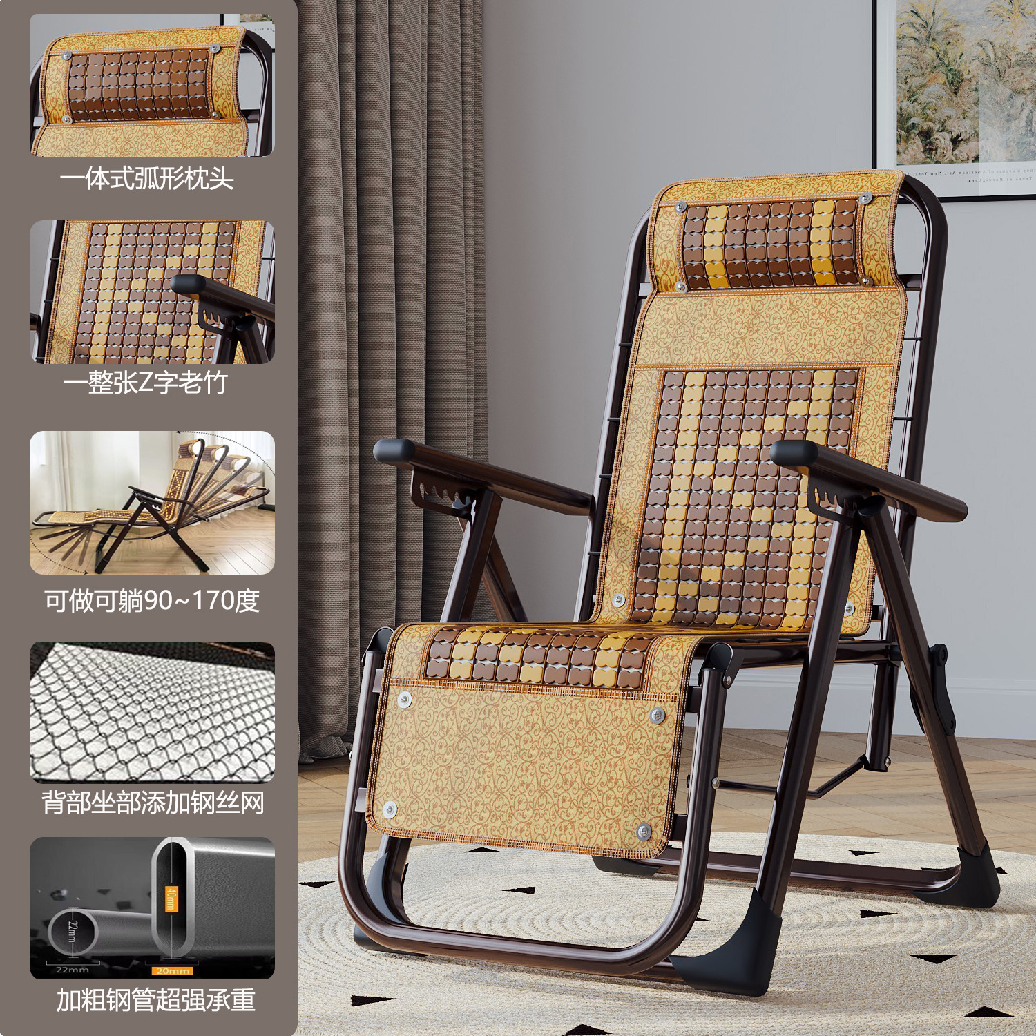 강페이 롱 접이식 점심 휴식 발코니 홈 레저 백레스트 마작 대나무 잠자는 의자 노인을위한 강하고 튼튼한 여름스토어 가기