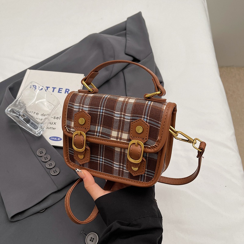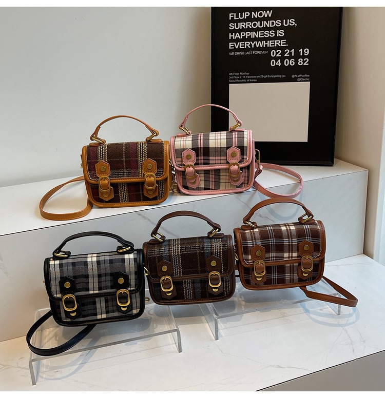 가을과 겨울 새로운 한국 스타일 체크 무늬 모직 미니 어린이 부모-자식 우체부 휴대용 슬렁 작은 가방 도매스토어 가기