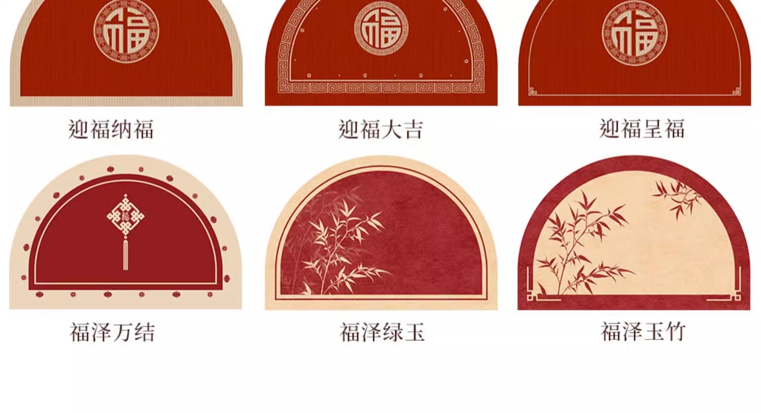 새로운 중국식 프린트 반원형 현관문 바닥 매트, 현관문 매트, 현관 매트, 현관 카펫, 현관 카펫, 가정용