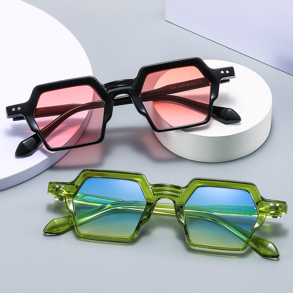 Y2K 재미있는 스타일 캔디 컬러 선글라스 인터넷 연예인 같은 스타일 기하학적 작은 상자 선글라스 복고풍 트렌디 선글라스스토어 가기