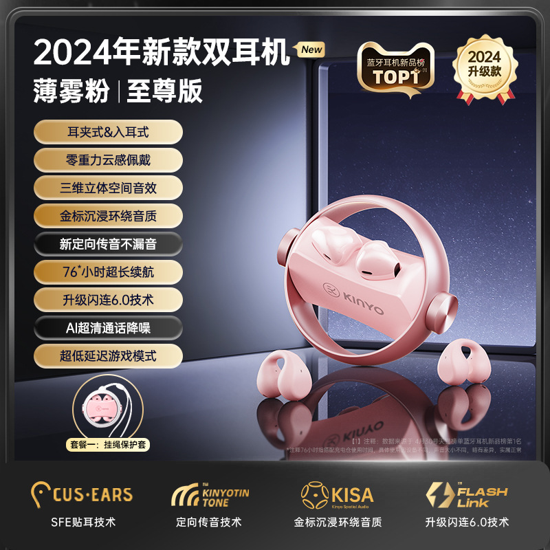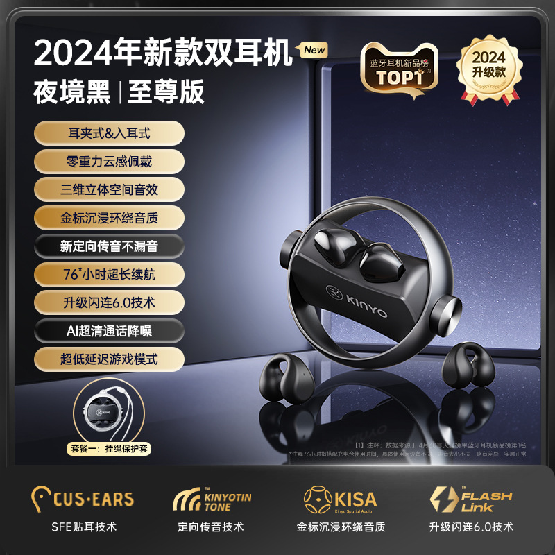 블루투스 헤드셋 2024 새로운 귀 클립 인 듀얼 목적 무선 오픈 타입 긴 배터리 수명 큰 힘스토어 가기