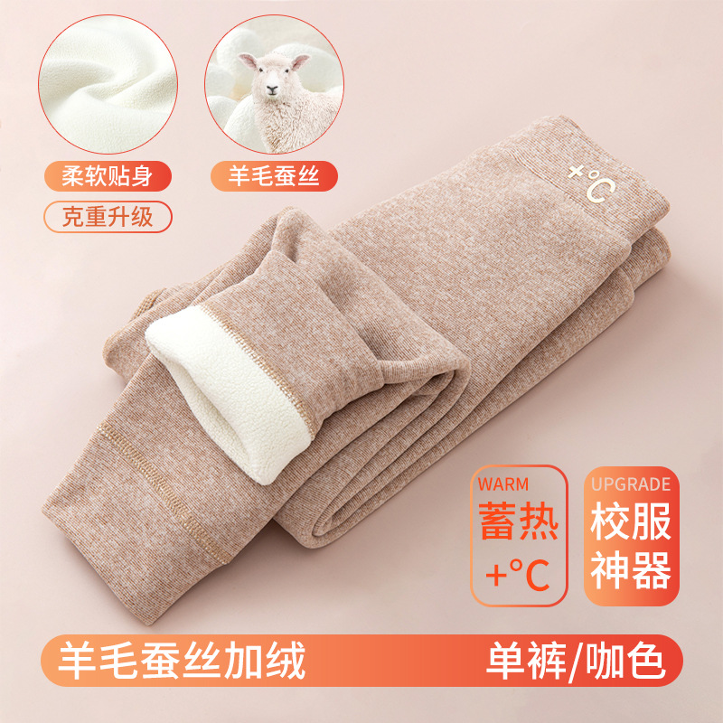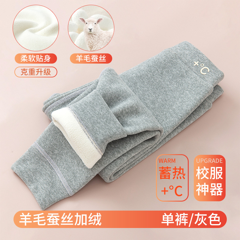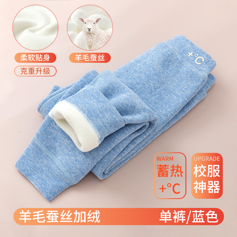 가을과 겨울 어린이 양모 뽕나무 실크 따뜻한 바지 소년 소녀 가을 바지 어린이 내부 철사 바지 두꺼운 아기 면 양모 바지