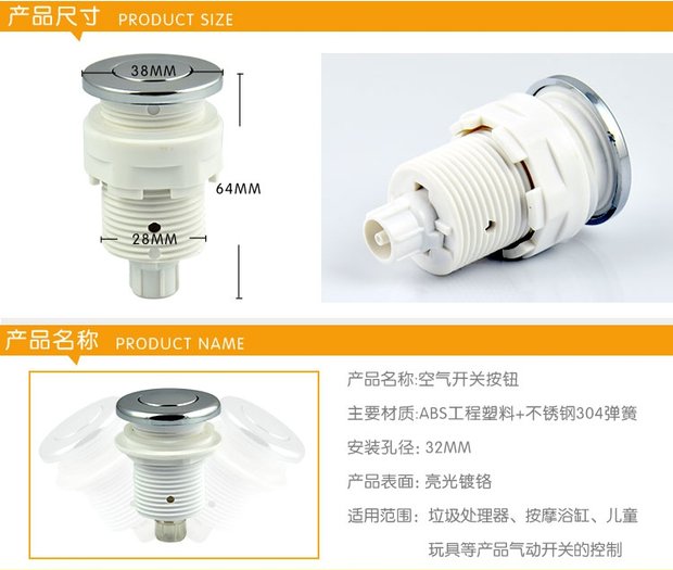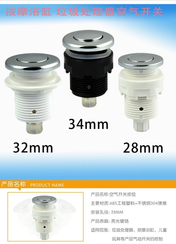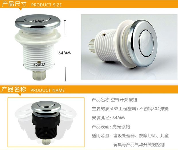 자쿠지 음식물 쓰레기 처리기 액세서리 분쇄기 공기 공압 압력 시작 스위치 버튼