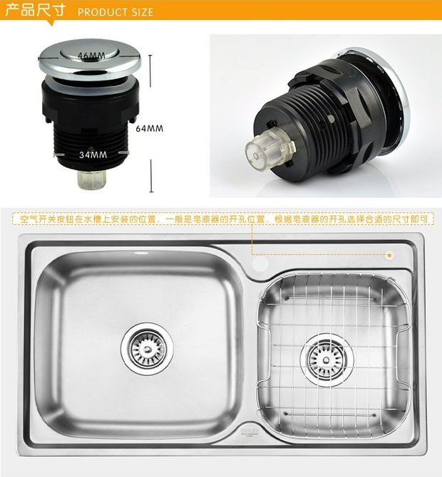자쿠지 음식물 쓰레기 처리기 액세서리 분쇄기 공기 공압 압력 시작 스위치 버튼스토어 가기