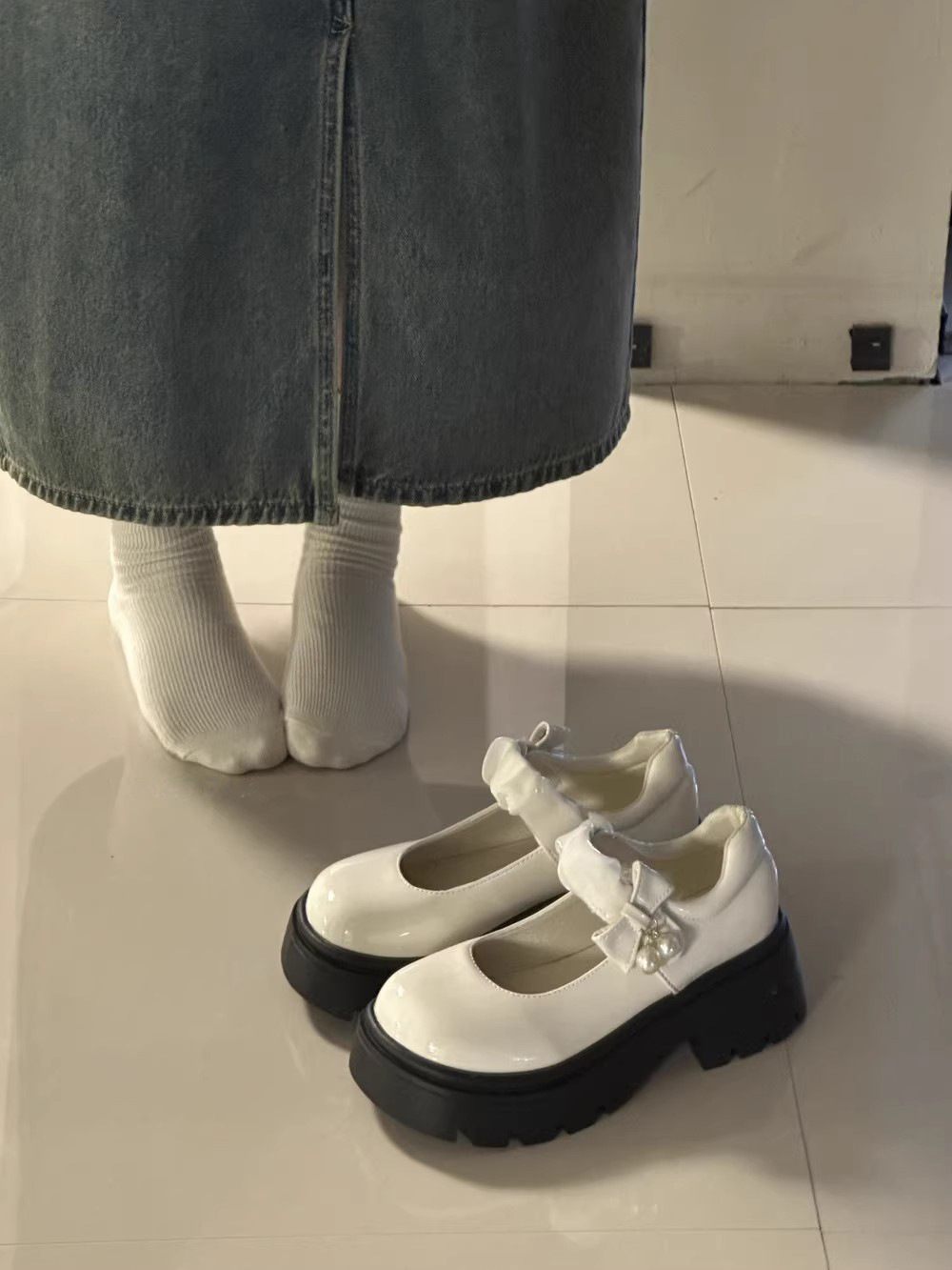 새로운 2024jk 신발 둥근 발가락 메리 제인 작은 가죽 신발 프렌치 증가 두꺼운 바닥 두꺼운 힐 여성 스커트 싱글 신발 가을