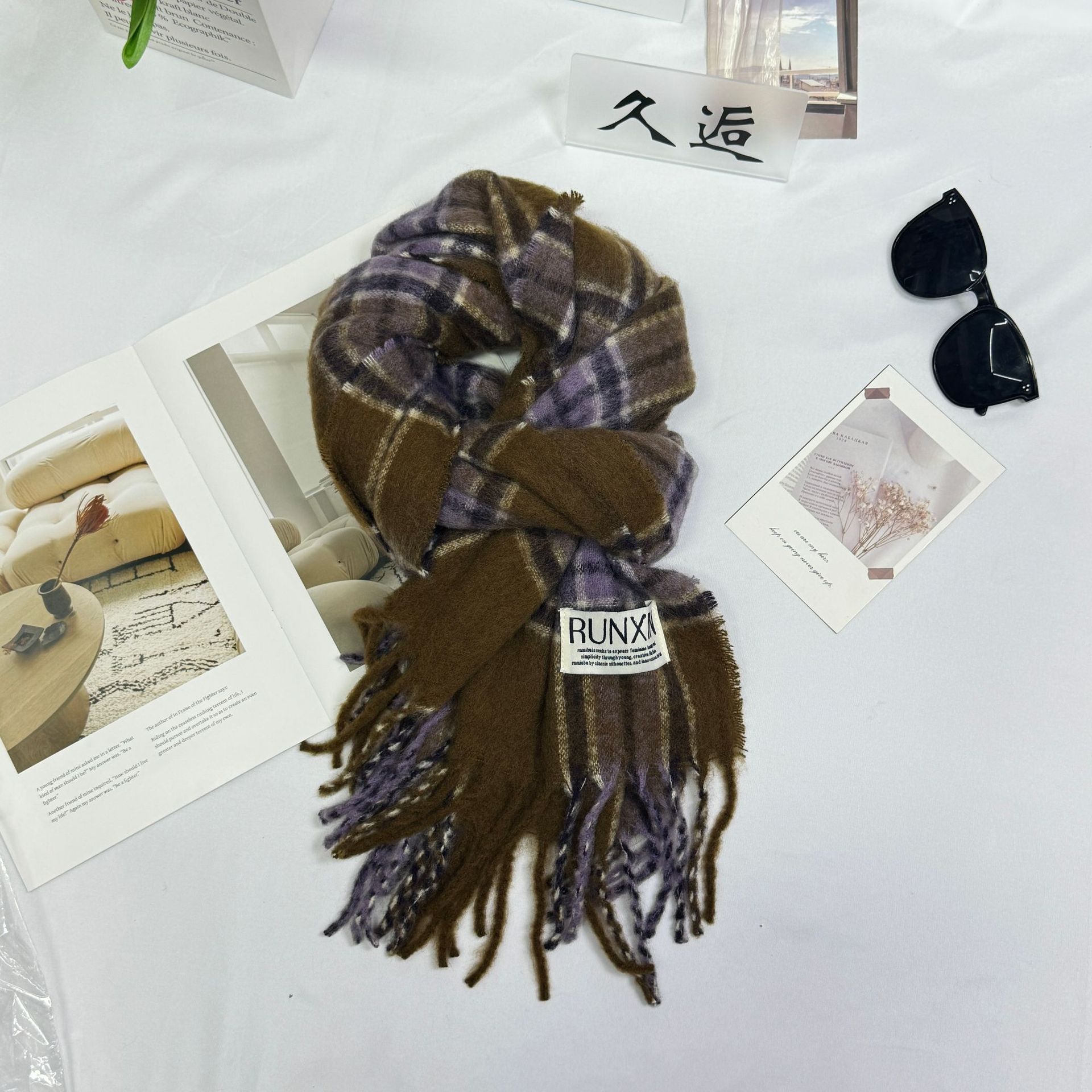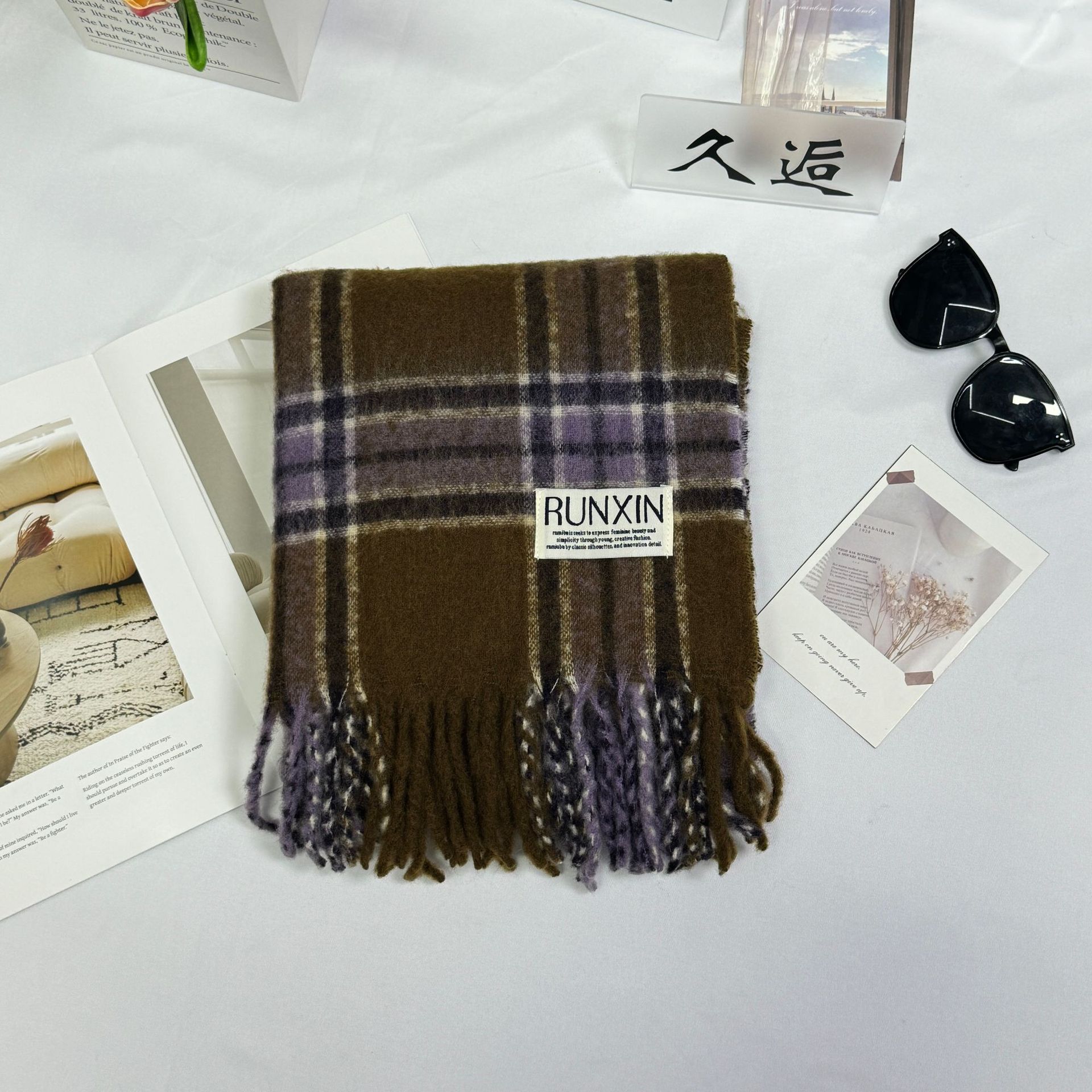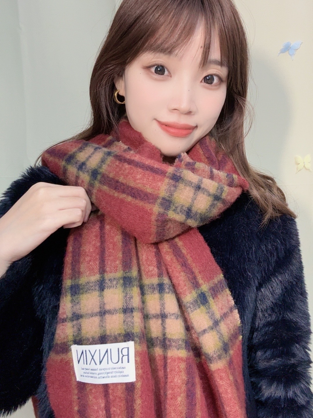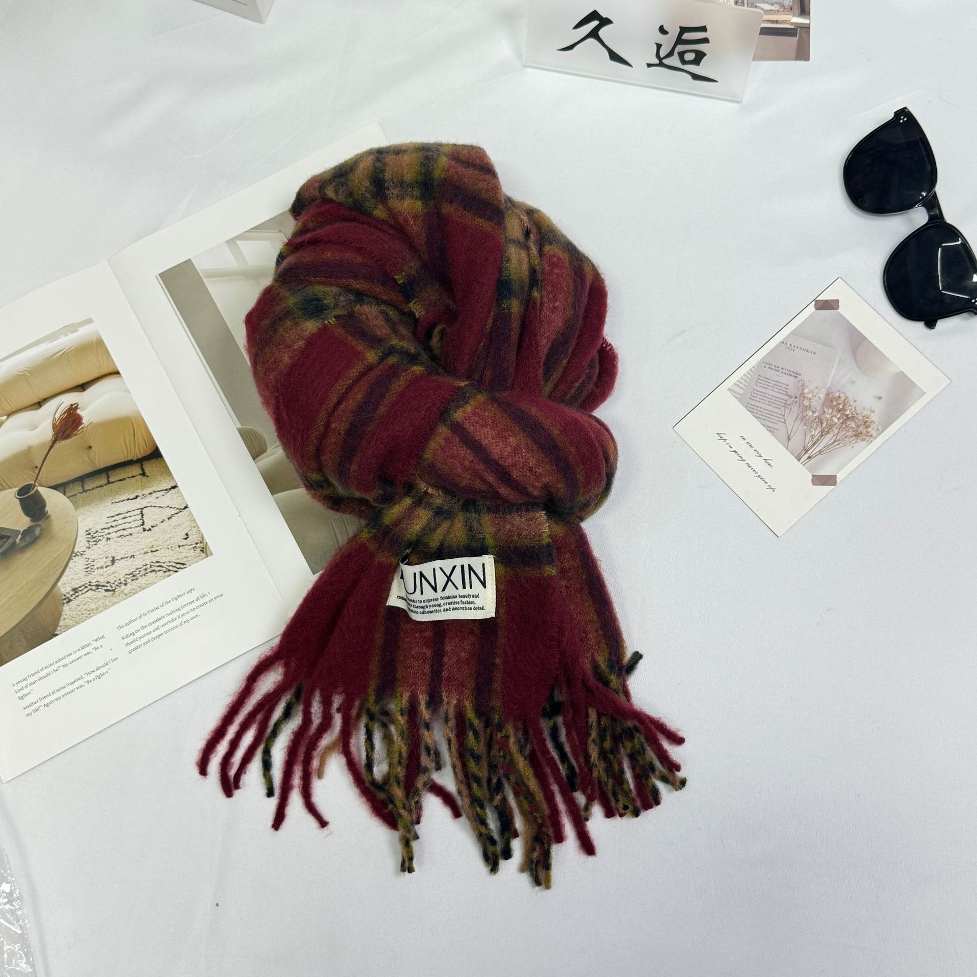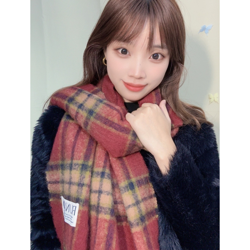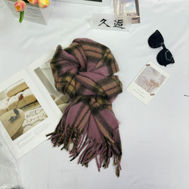 2024 새로운 핑크 블랙 격자 무늬 캐시미어 스카프 여성의 두꺼운 겨울 하이 엔드 넥 목도리 듀얼 사용 커플 스타일스토어 가기