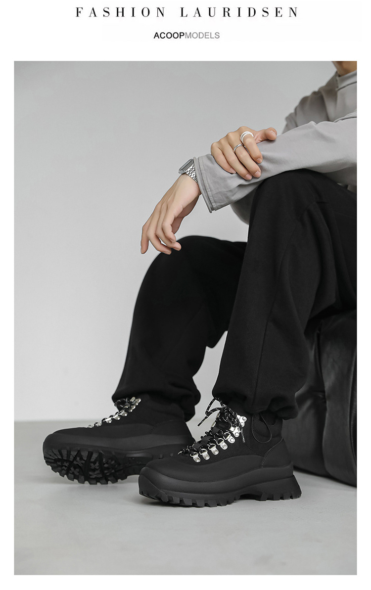 야외 부츠 마틴 남자 가을 2024 새로운 두꺼운 단독 증가 팬더 신발 야외 등산 툴링 신발스토어 가기