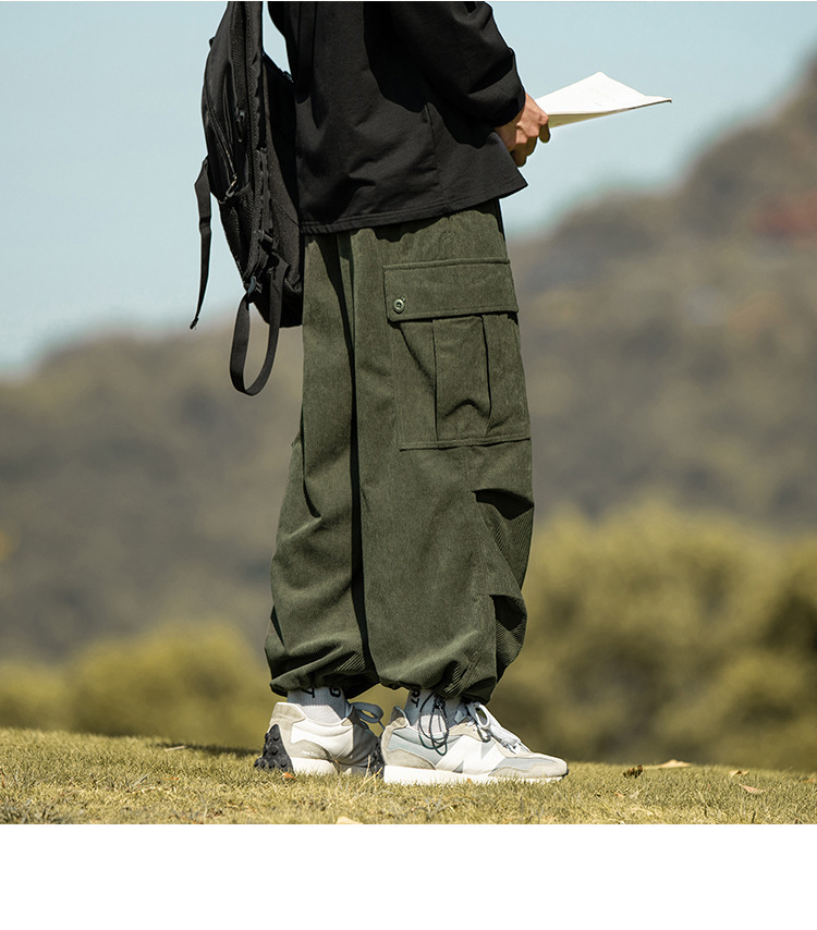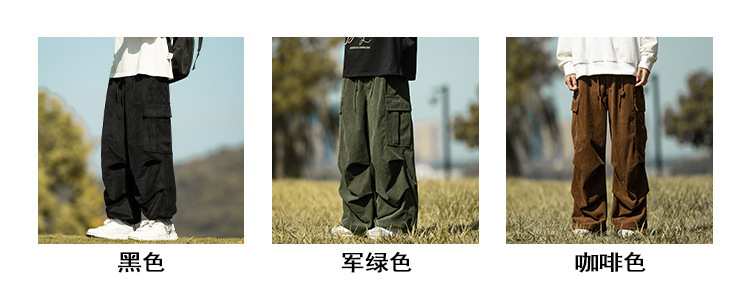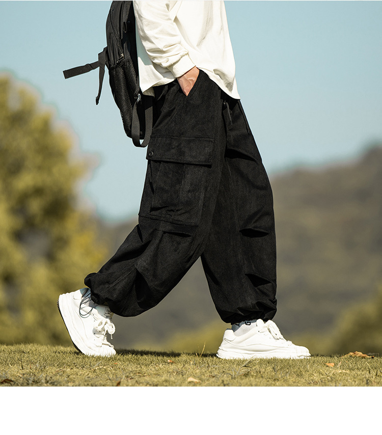 일본식 도시 소년이 남자의 가을과 겨울 플러스 사이즈 스포츠 캐주얼 기모 두꺼운 코듀로이 느슨한 넓은 다리 바지