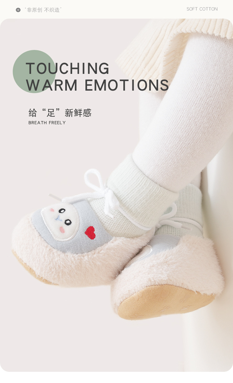 가을과 겨울 아기 바닥 신발 기모 따뜻한 만화 실내 아기 유아 신발 양말 겨울 어린이 안티 슬립 신발 소프트 솔