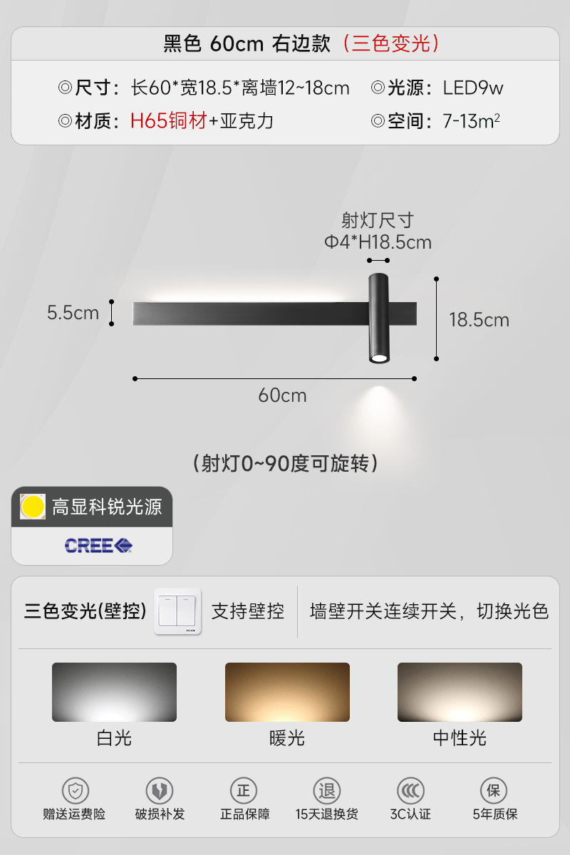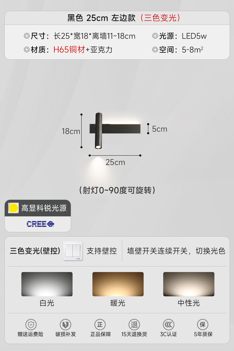 모든 구리 미니멀리스트 벽 램프 거실 벽 회전 스포트라이트 창조적 인 간단한 현대 연구 독서 침실 벽 램프
