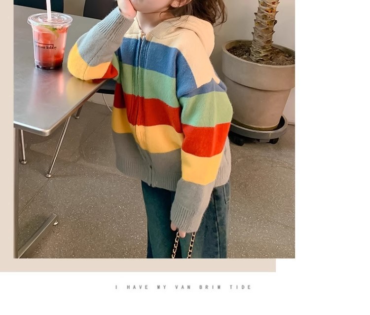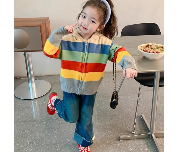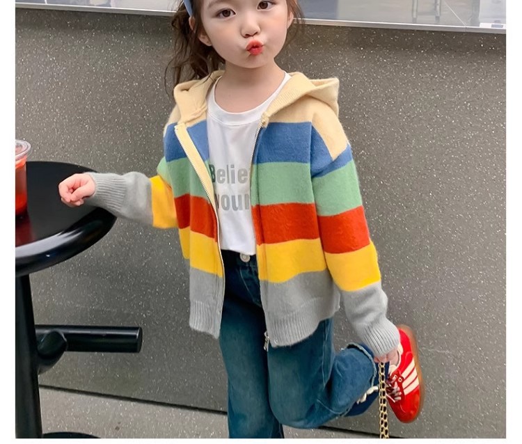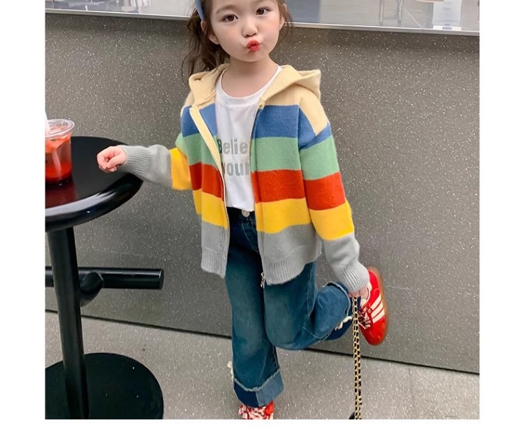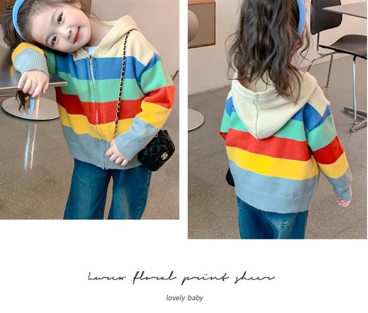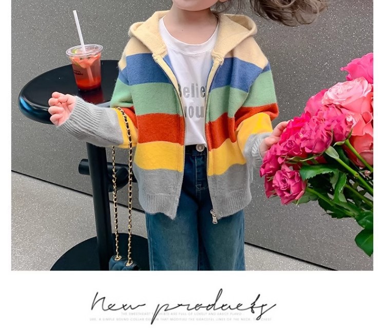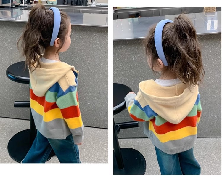 소년 소녀를위한 소녀 후드 니트 카디건 봄과 가을 옷 소년 소녀 용 줄무늬 스웨터 자켓 지퍼 탑스토어 가기