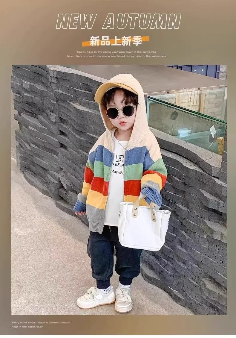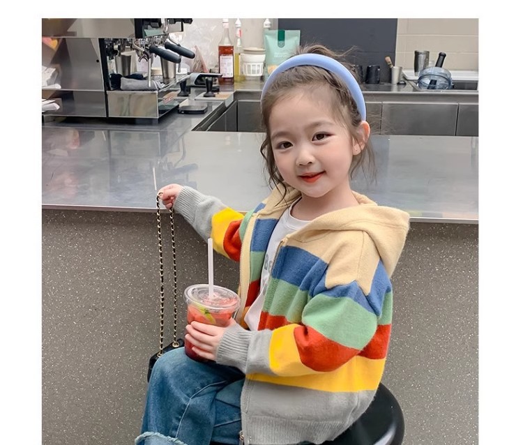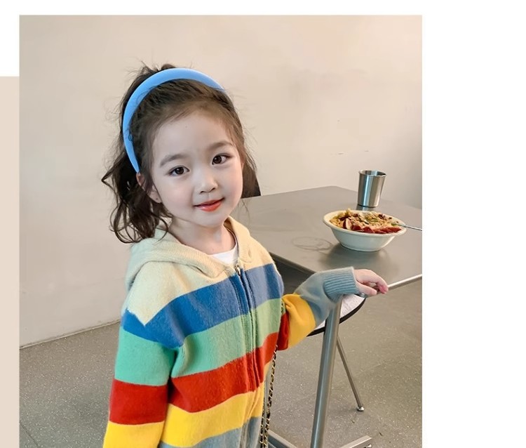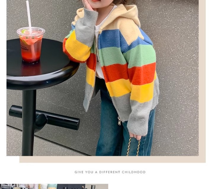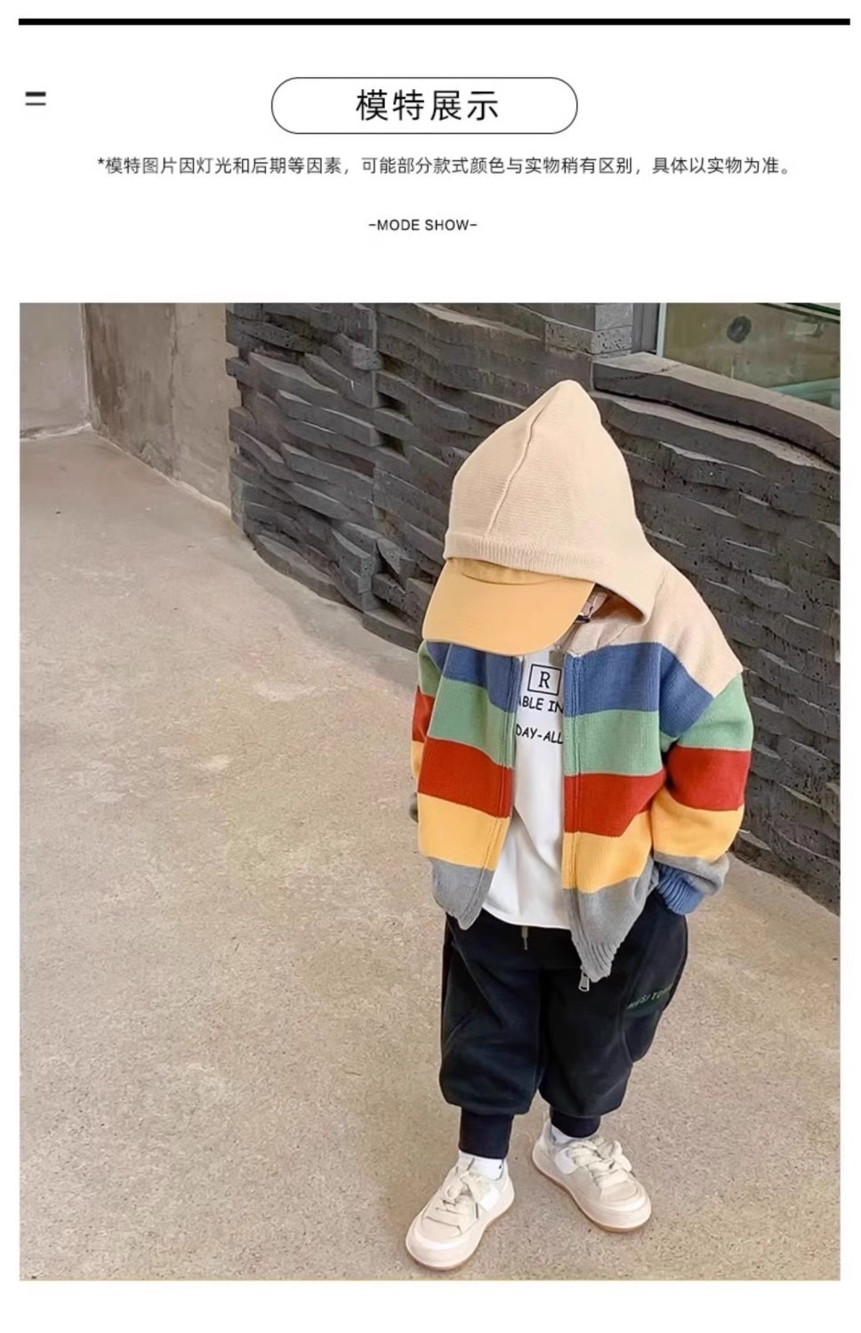 소년 소녀를위한 소녀 후드 니트 카디건 봄과 가을 옷 소년 소녀 용 줄무늬 스웨터 자켓 지퍼 탑스토어 가기