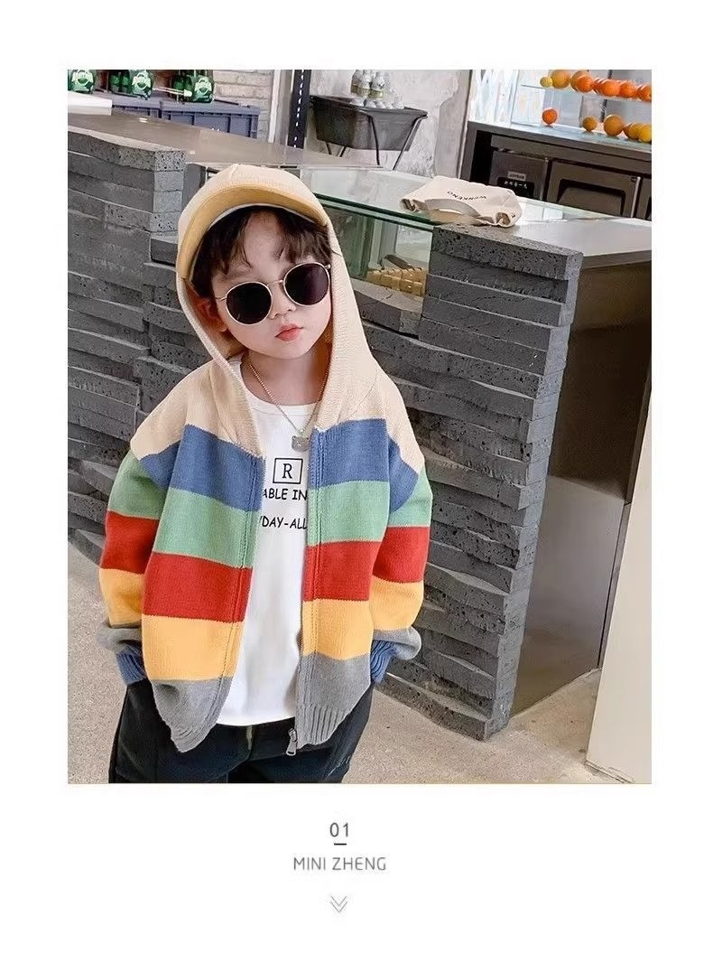 소년 소녀를위한 소녀 후드 니트 카디건 봄과 가을 옷 소년 소녀 용 줄무늬 스웨터 자켓 지퍼 탑