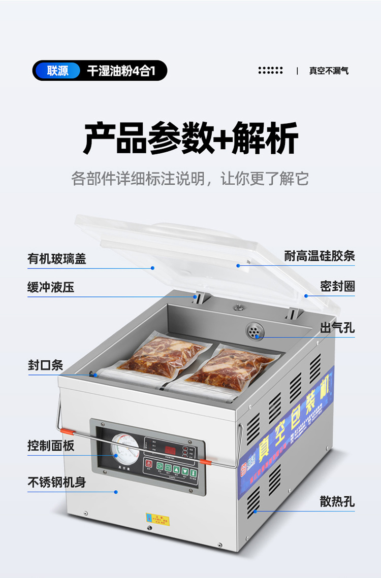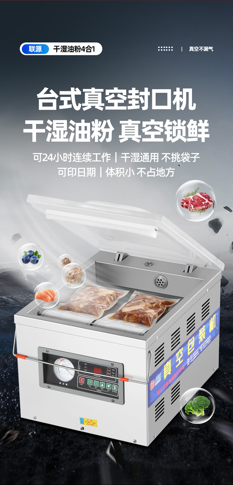 Lianyuan 데스크탑 진공 포장기, 소형 상업용 전자동 밀봉 및 신선도 유지 기계, 건식 및 습식 모두 사용 가능, 가방 선택 불필요