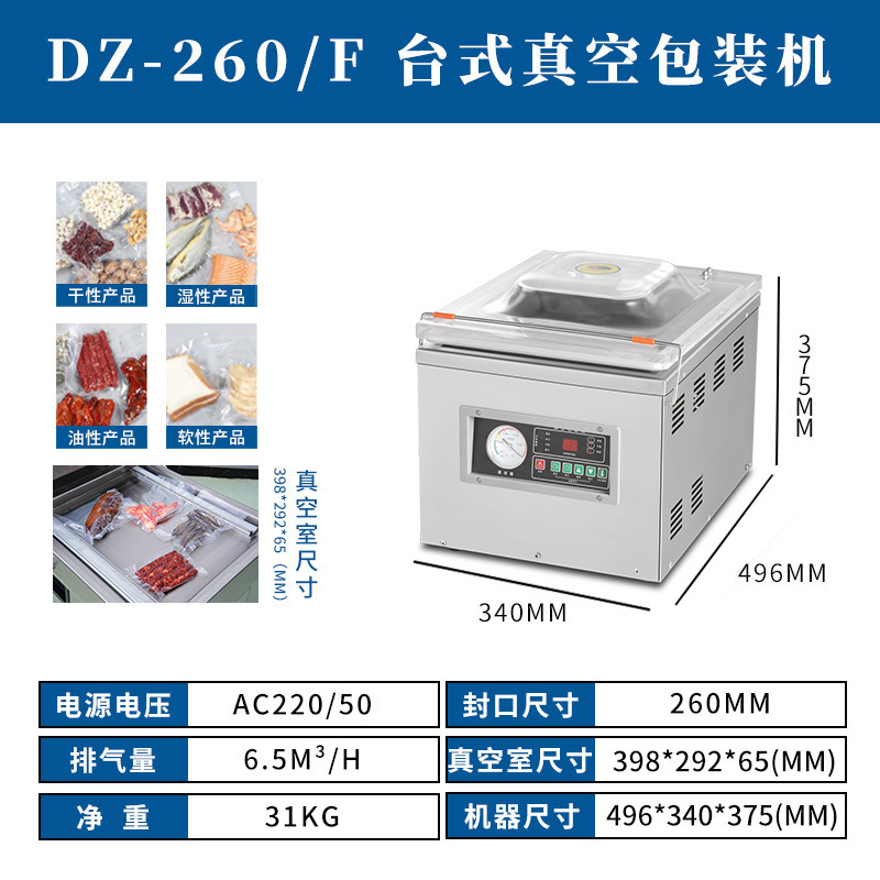 DZ-260 데스크탑 진공 포장기 상업용 포장 장비 신선 유지 밀봉 기계 건식 및 습식 소형 진공 포장기