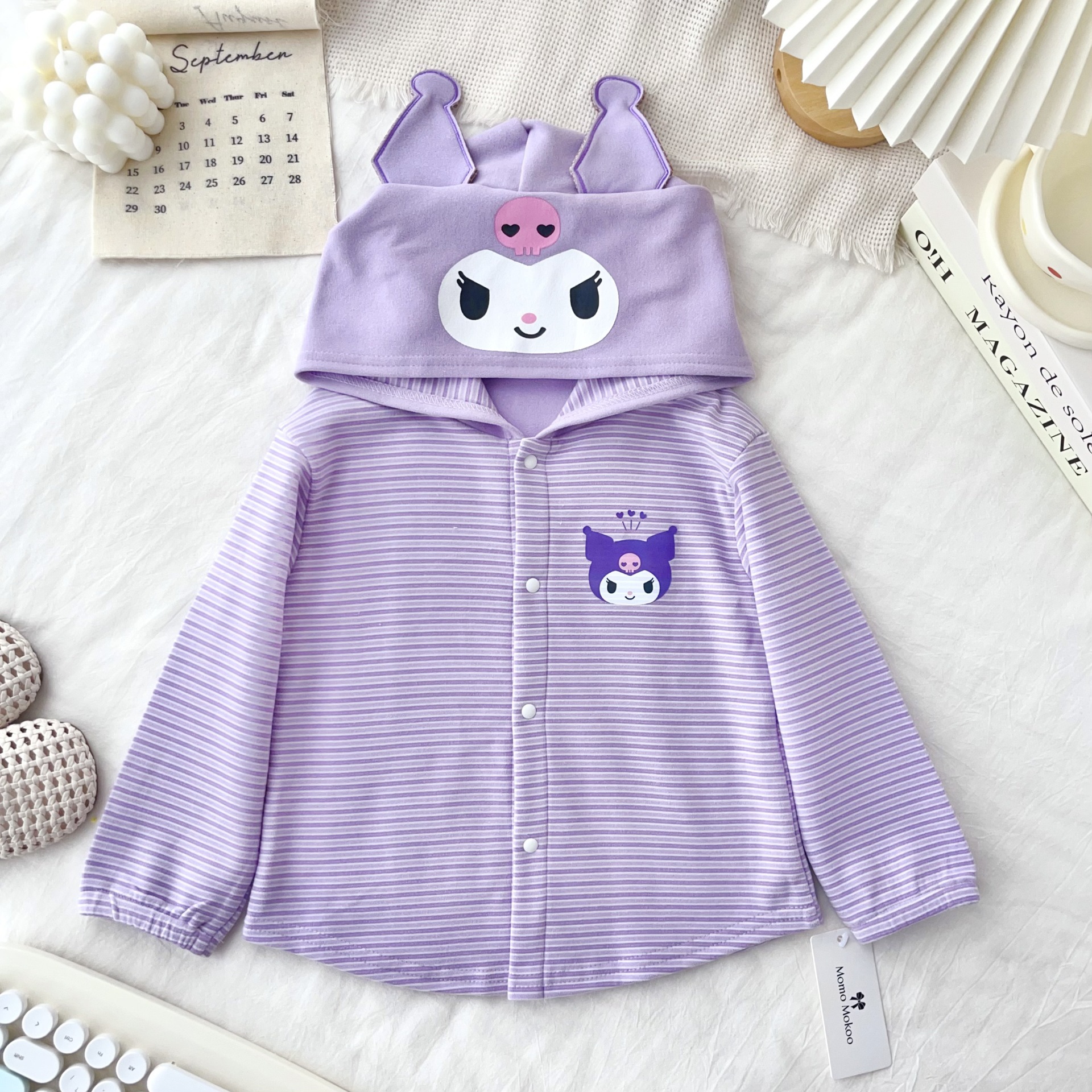 24 어린이 착용 가을 새로운 어린이 코트 소년과 소녀 후드 만화 귀 카디건 귀여운 가을 얇은 줄무늬
