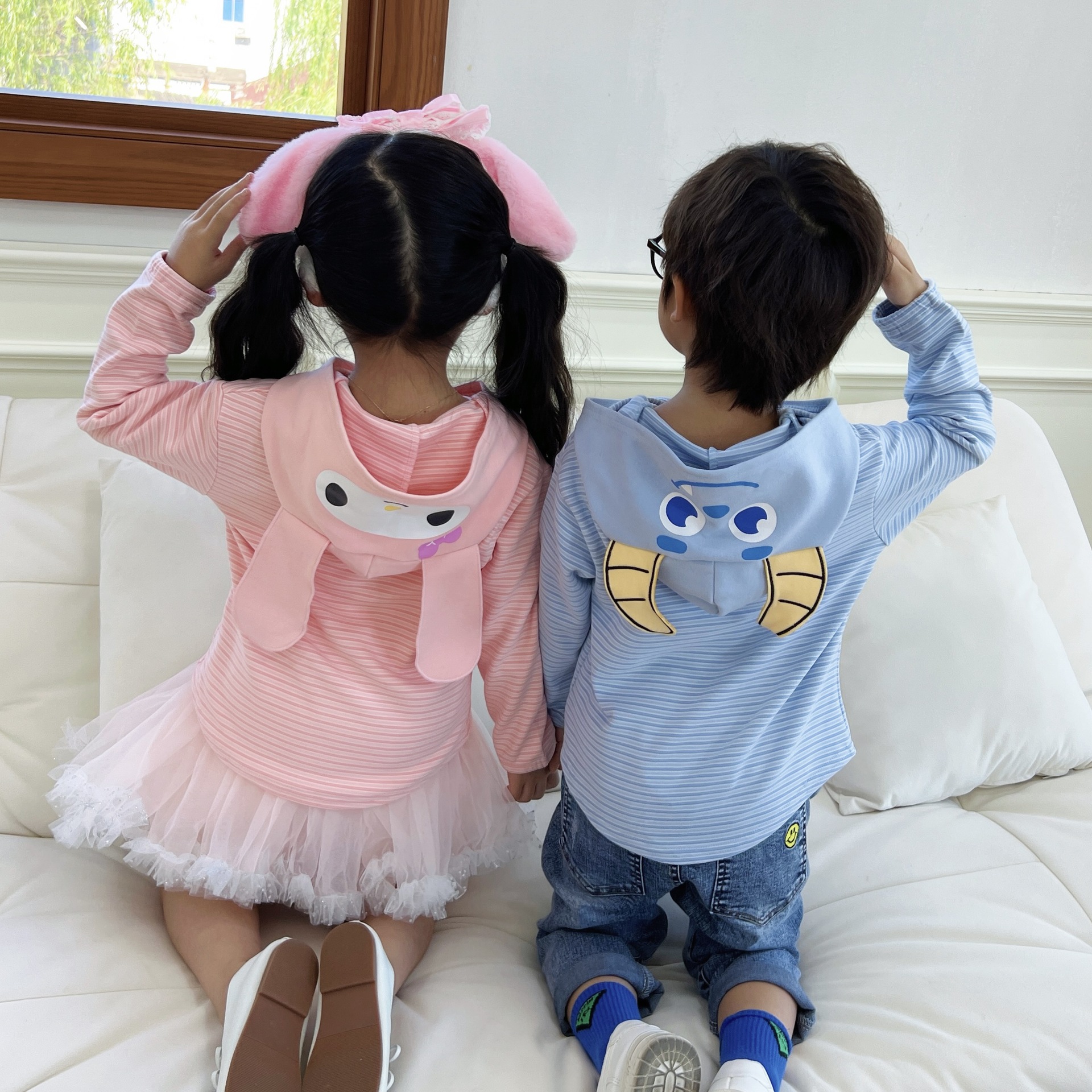 24 어린이 착용 가을 새로운 어린이 코트 소년과 소녀 후드 만화 귀 카디건 귀여운 가을 얇은 줄무늬스토어 가기