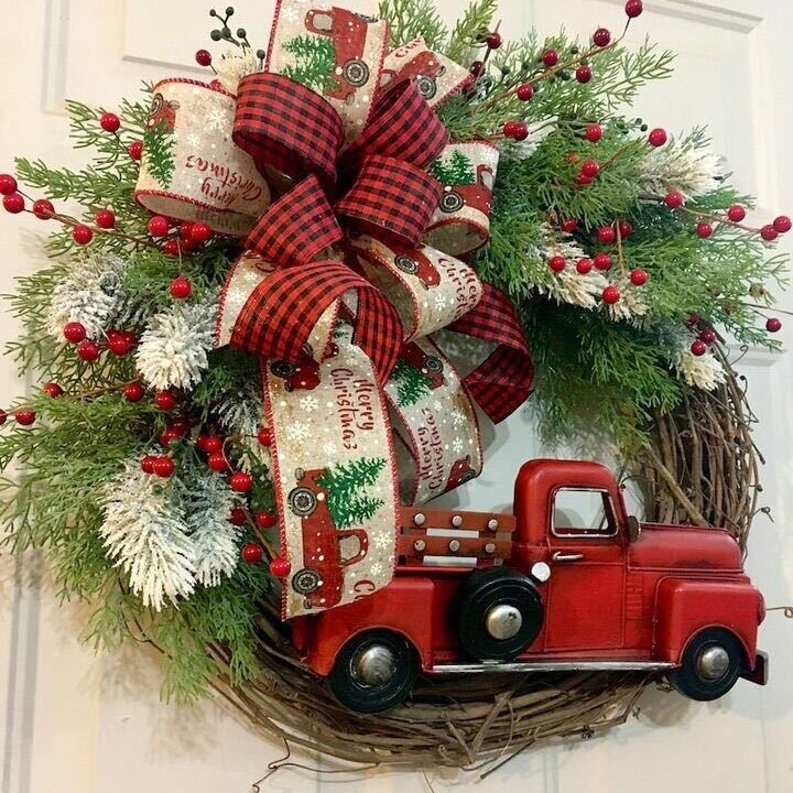 크리스마스 빨간 트럭 크리스마스 화환 농가 빨간 트럭 화환 크리스마스 장식 겨울 화환스토어 가기